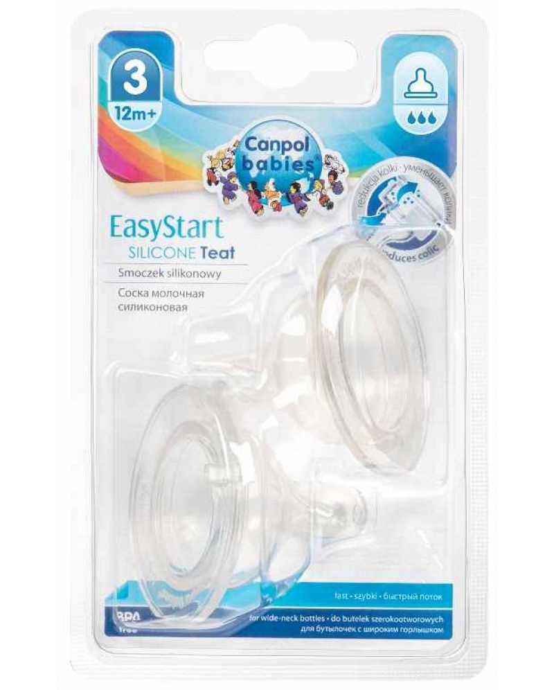 Tetina din silicon cu flux mare pentru biberon cu gât larg EasyStart 12 luni+, 2 bucăți, Canpol babies