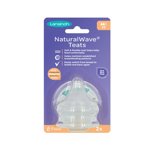Biberon 240ml + tetina flux mediu NaturalWave, +3 luni, 2 bucăți, LANSINOH