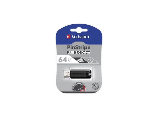Memorie USB 3.0, 64GB, negru, PinStripe Verbatim 49318