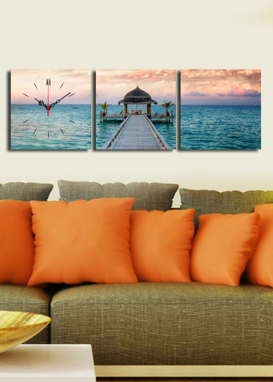 Ceas de perete decorativ din pânză (3 bucăți), 3P2828CS-8, Dimensiune: 28 x 28 cm (3 bucăți), Multicolor