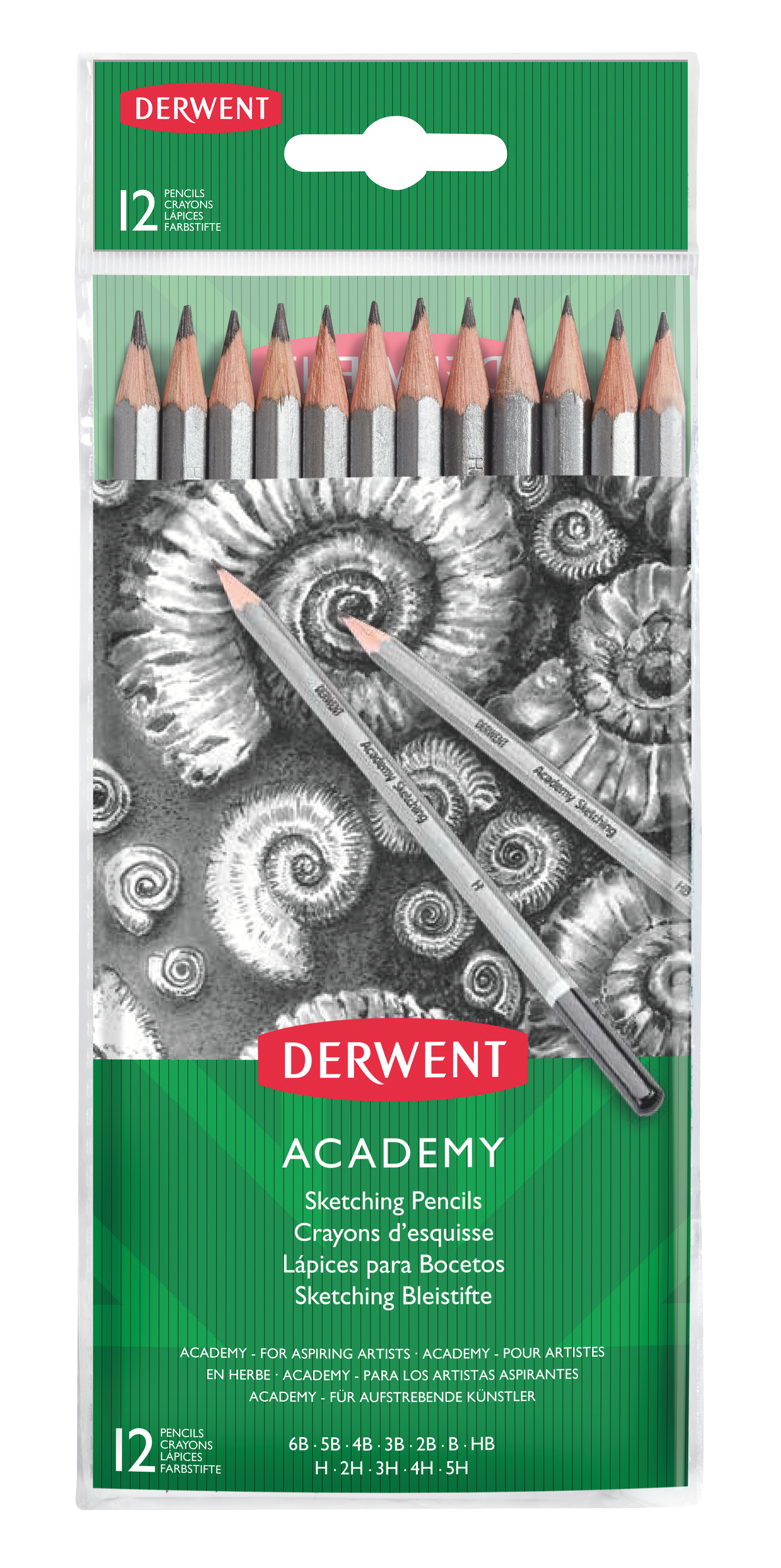 Creioane grafit, 5H-6B, 12 buc/cutie, Derwent Academy