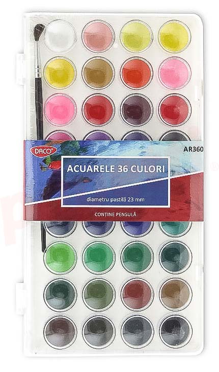 Acuarele pe baza de apa, 36 culori, pastila 23mm, pensula, AR360 Daco