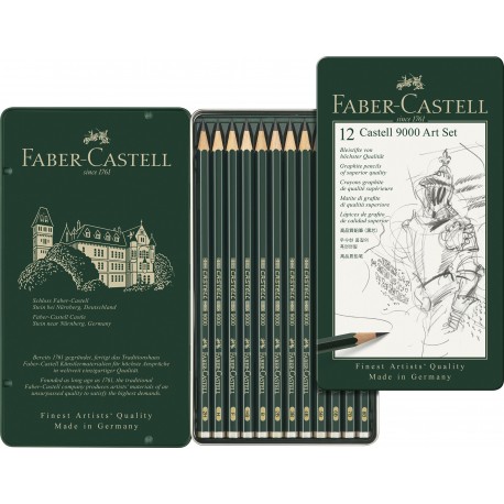 Creioane grafit, in cutie metal, 12 buc/set, Arta, Castell 9000, Faber Castell-FC119065