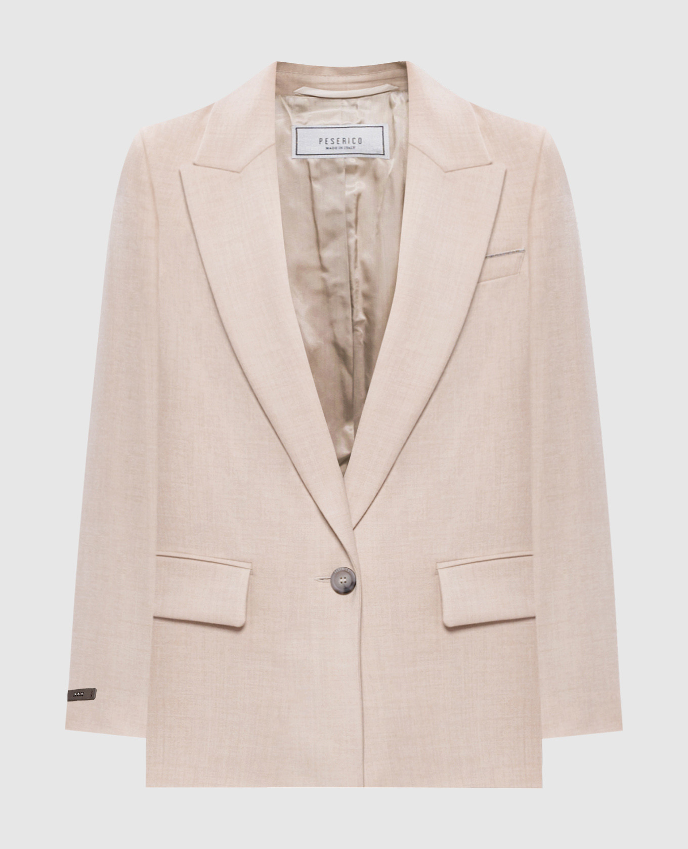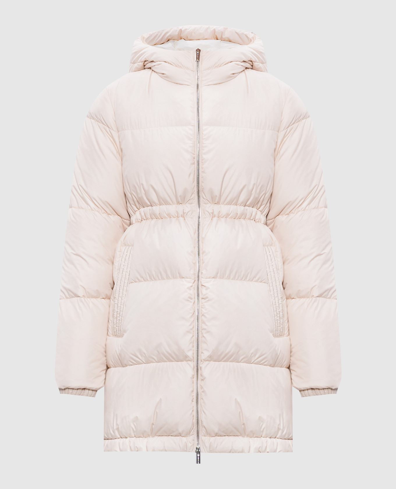 Beige quilted down jacket with monil chain and branded patch Peserico