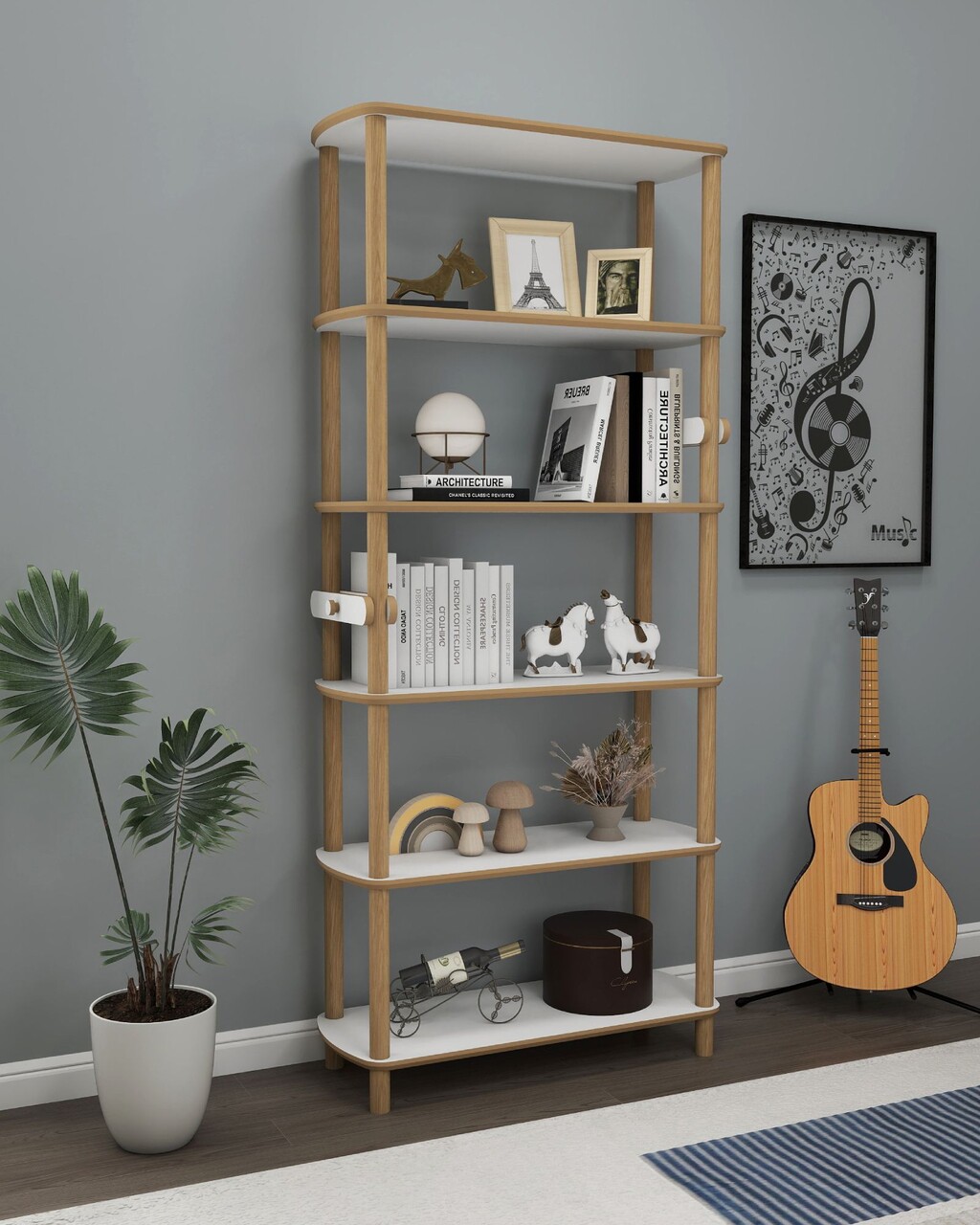 Corp biblioteca, Hanah Home, Rosa 6, 80x174x30 cm, Stejar / Alb