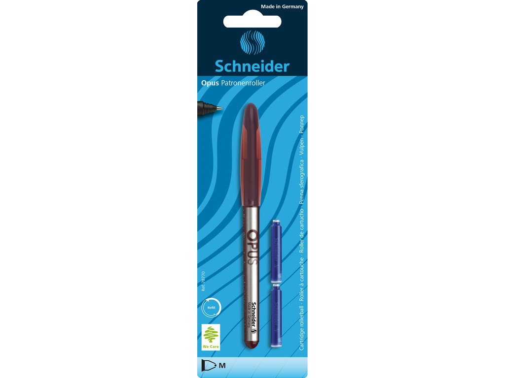 Set Stilou + Roller Schneider Opus 6229-RV, penita iridium M, alimentare rezerve, corp plastic, blister (+2 rezerve)