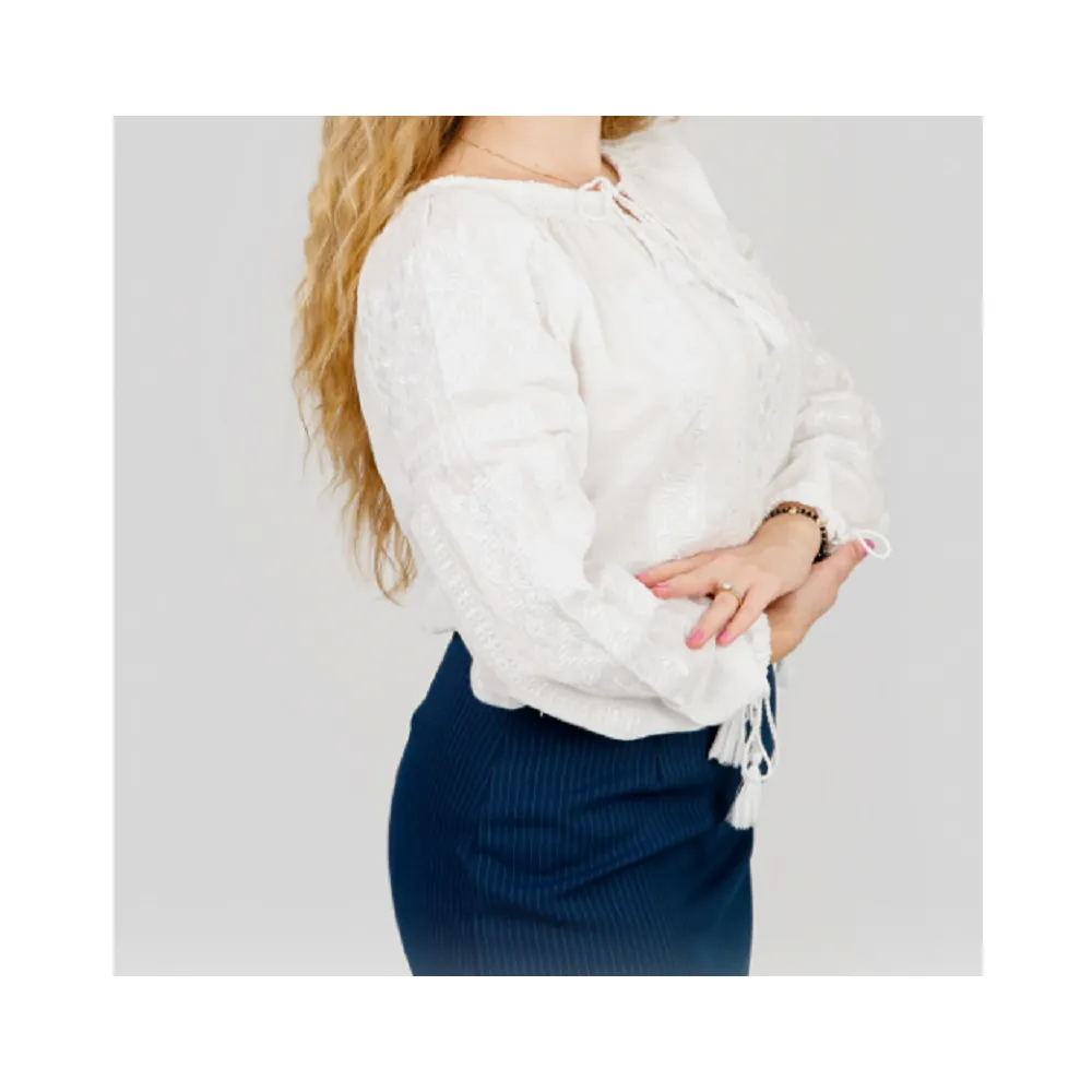 Bluza Tip Ie Alba cu Motiv Floral Alb - BMG82