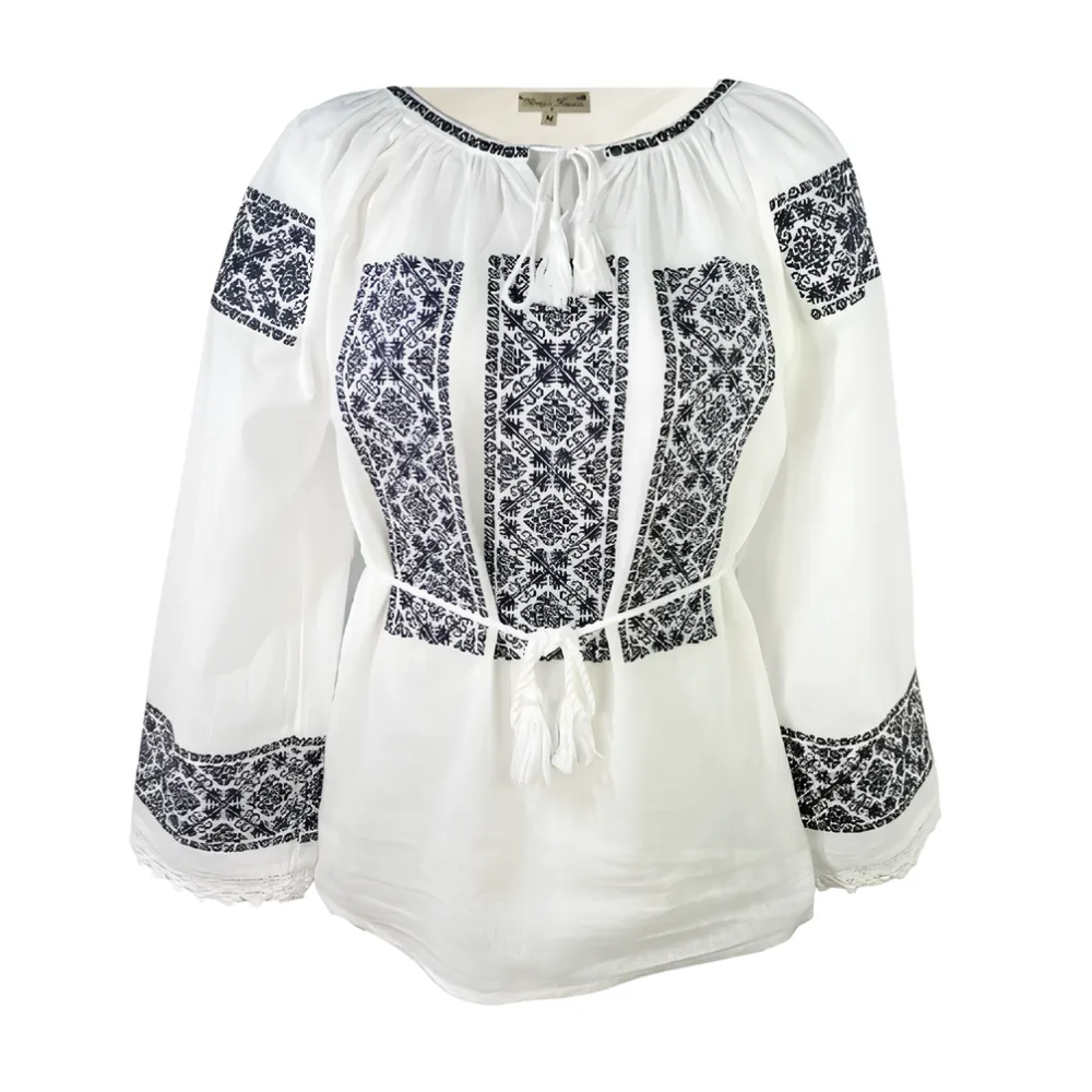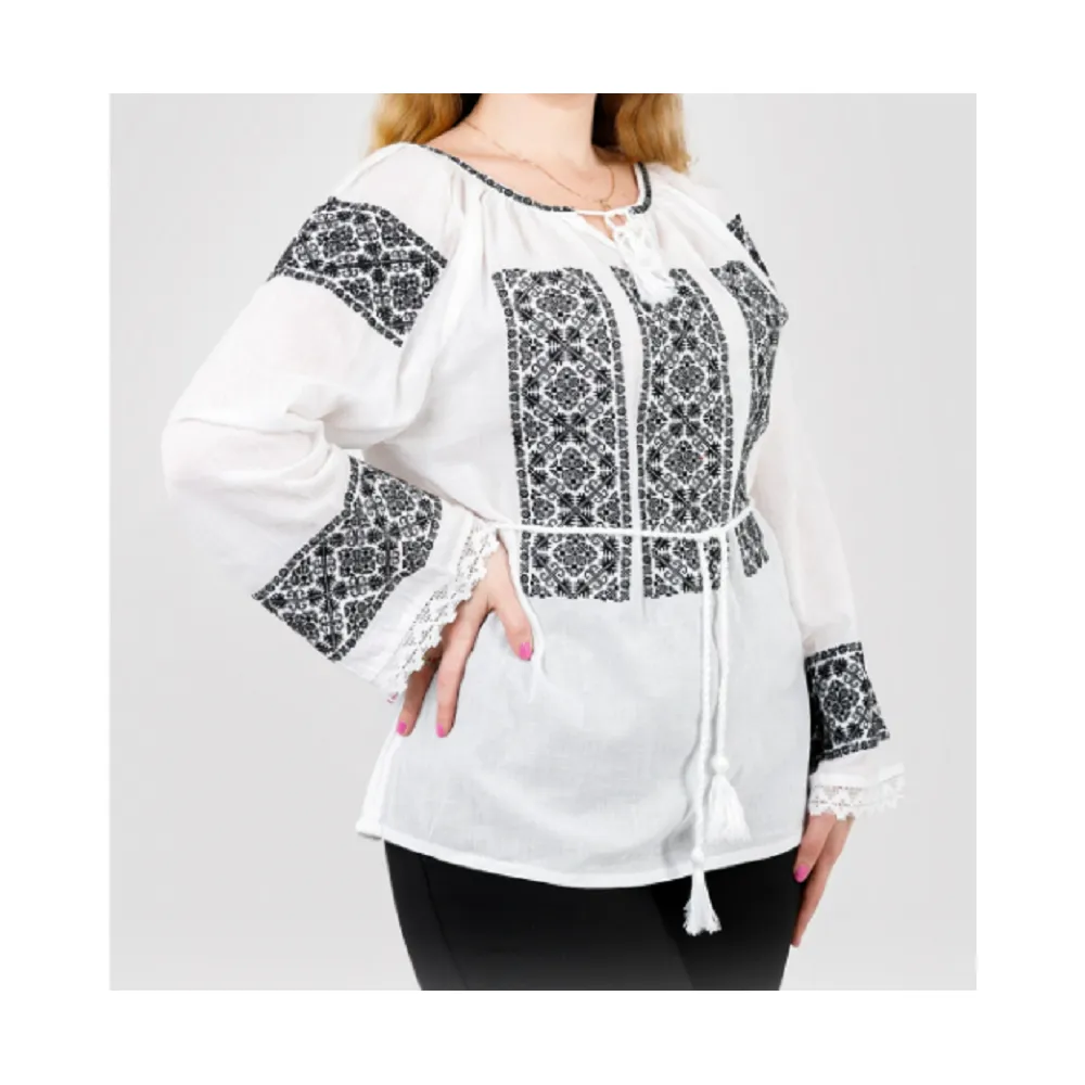 Bluza Tip Ie Alba cu Motiv Geometric Negru - BMG84
