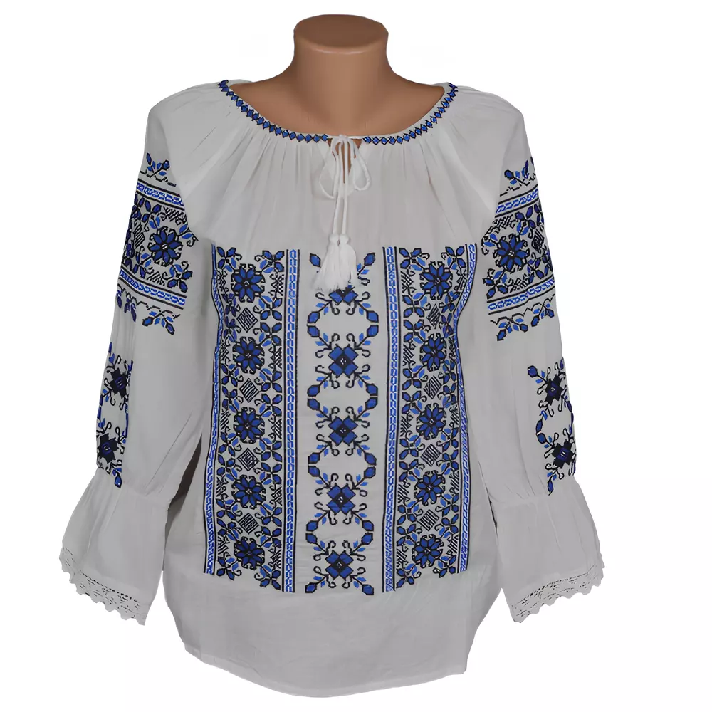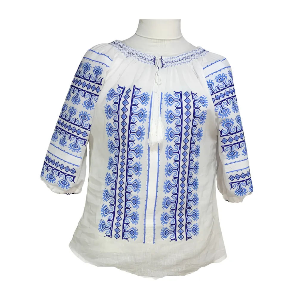 Bluza Tip Ie Alba cu Motiv Floral Albastru - BMG81