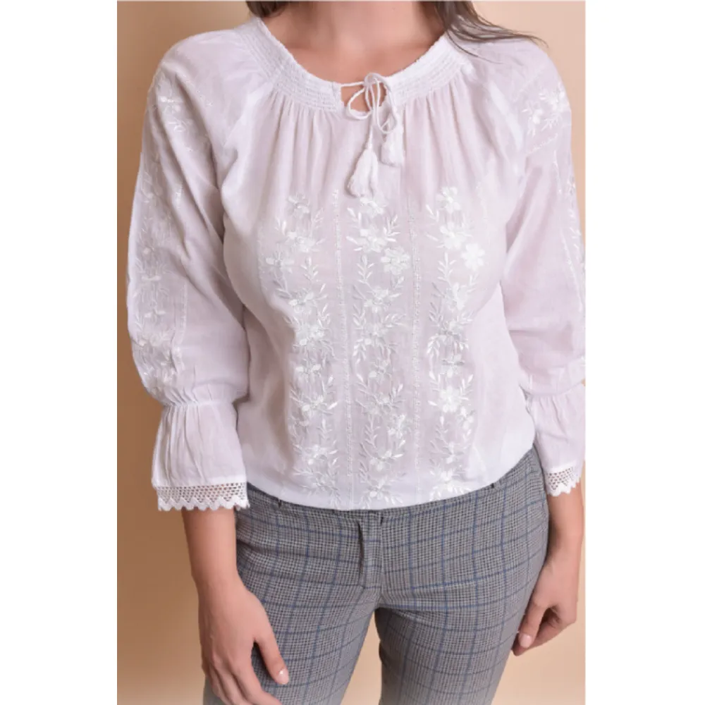 Bluza Tip Ie Alba cu Motiv Floral Alb - BMG42