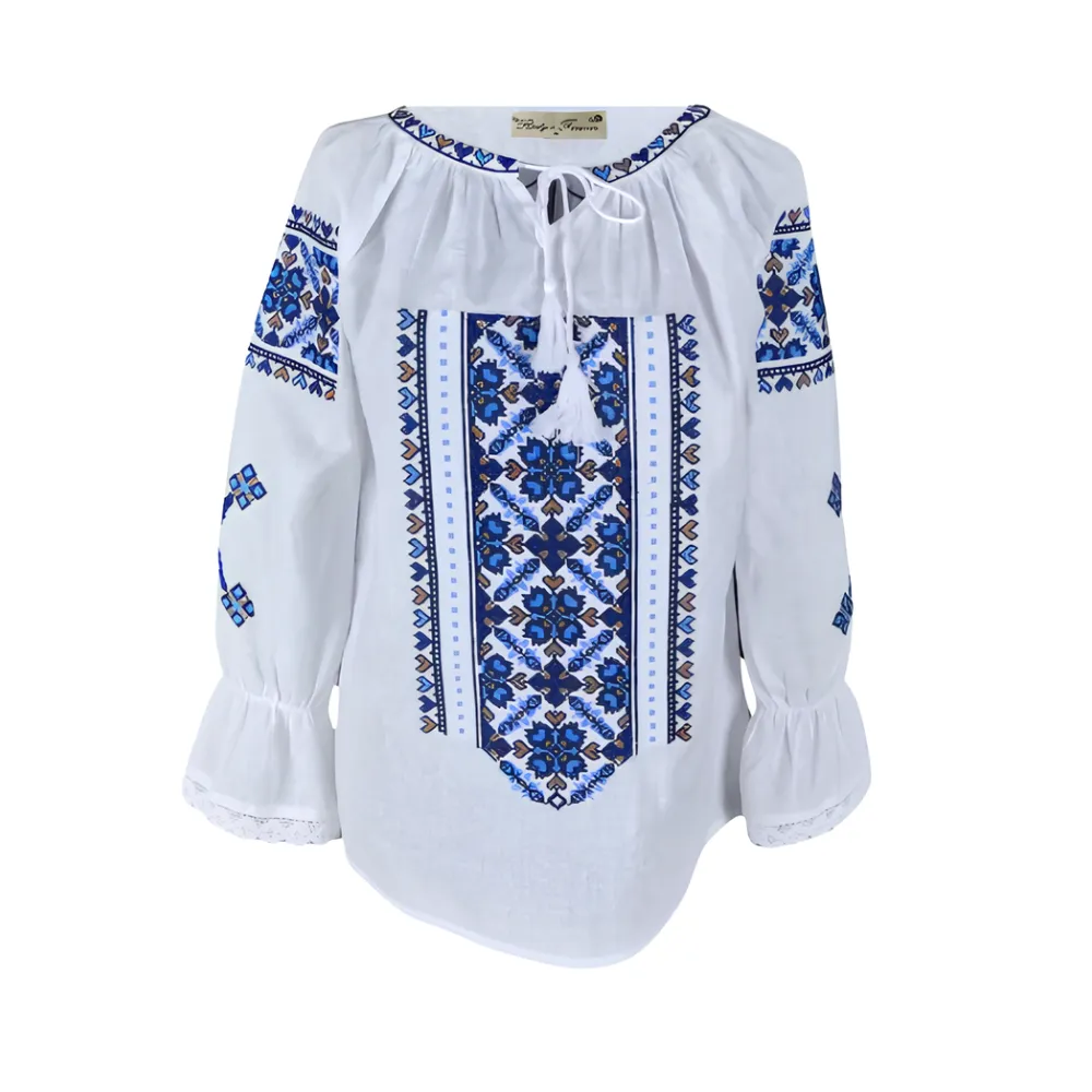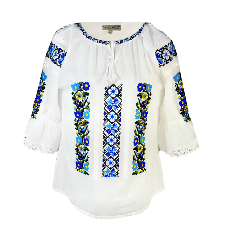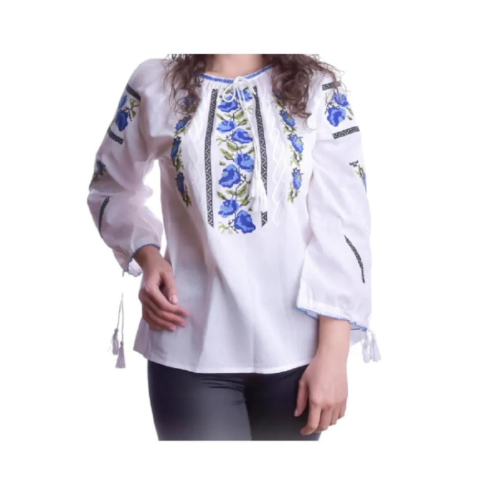 Bluza Tip Ie Alba cu Motiv Floral Albastru - BMG40