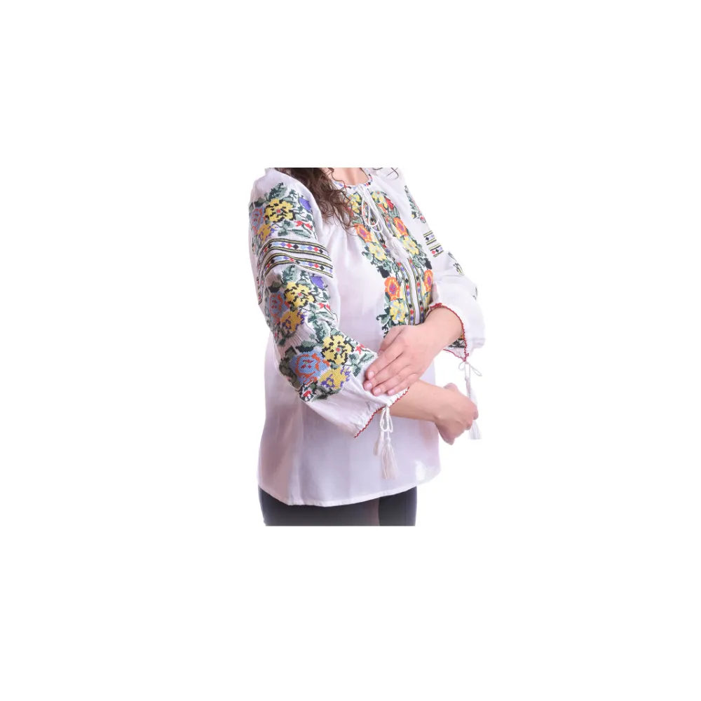 Bluza Tip Ie Alba cu Motiv Floral Multicolor - BMG36