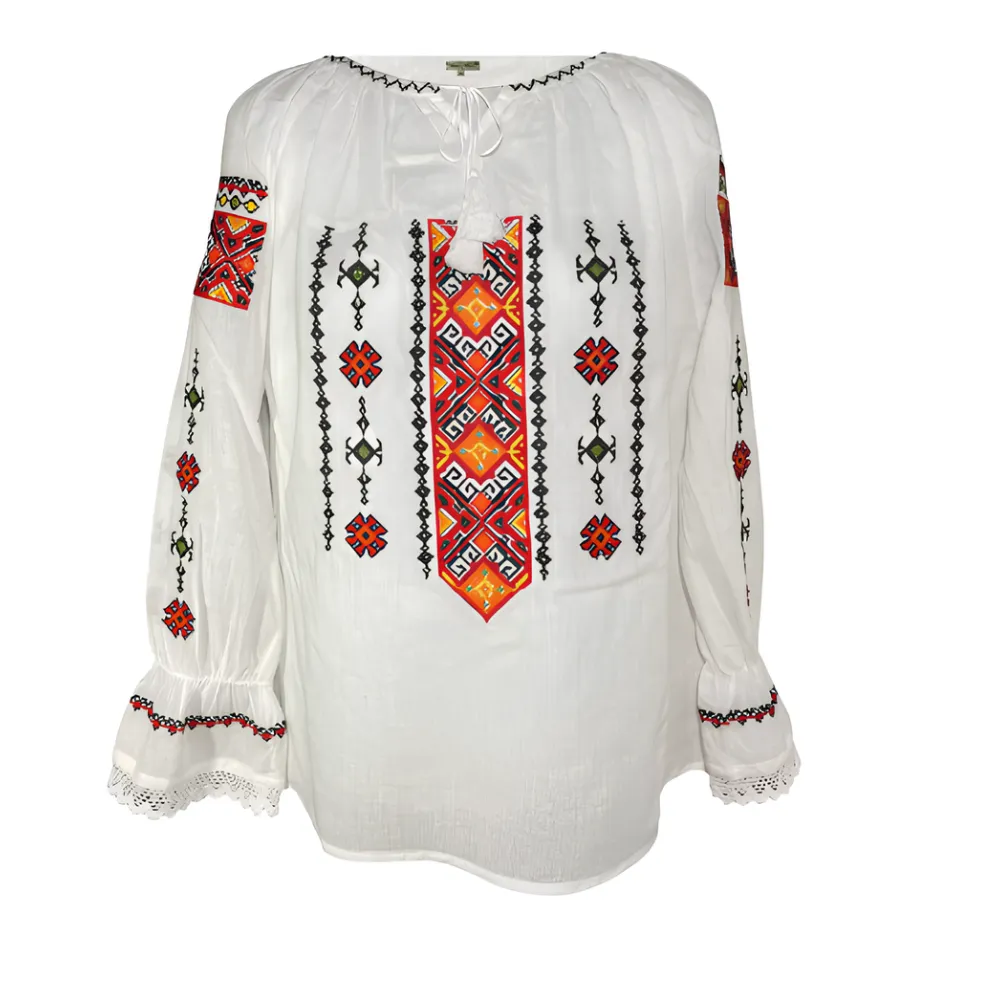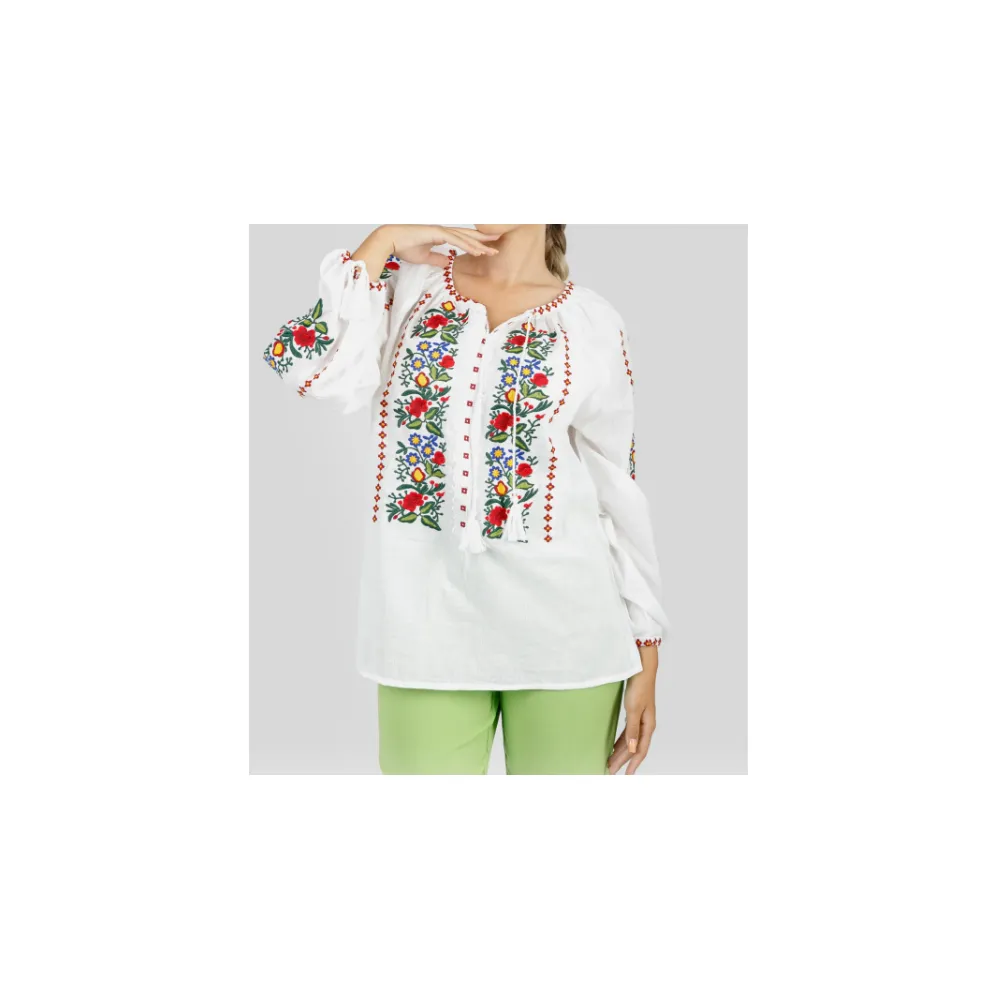 Bluza Tip Ie Alba cu Motiv Floral Multicolor - BMG46