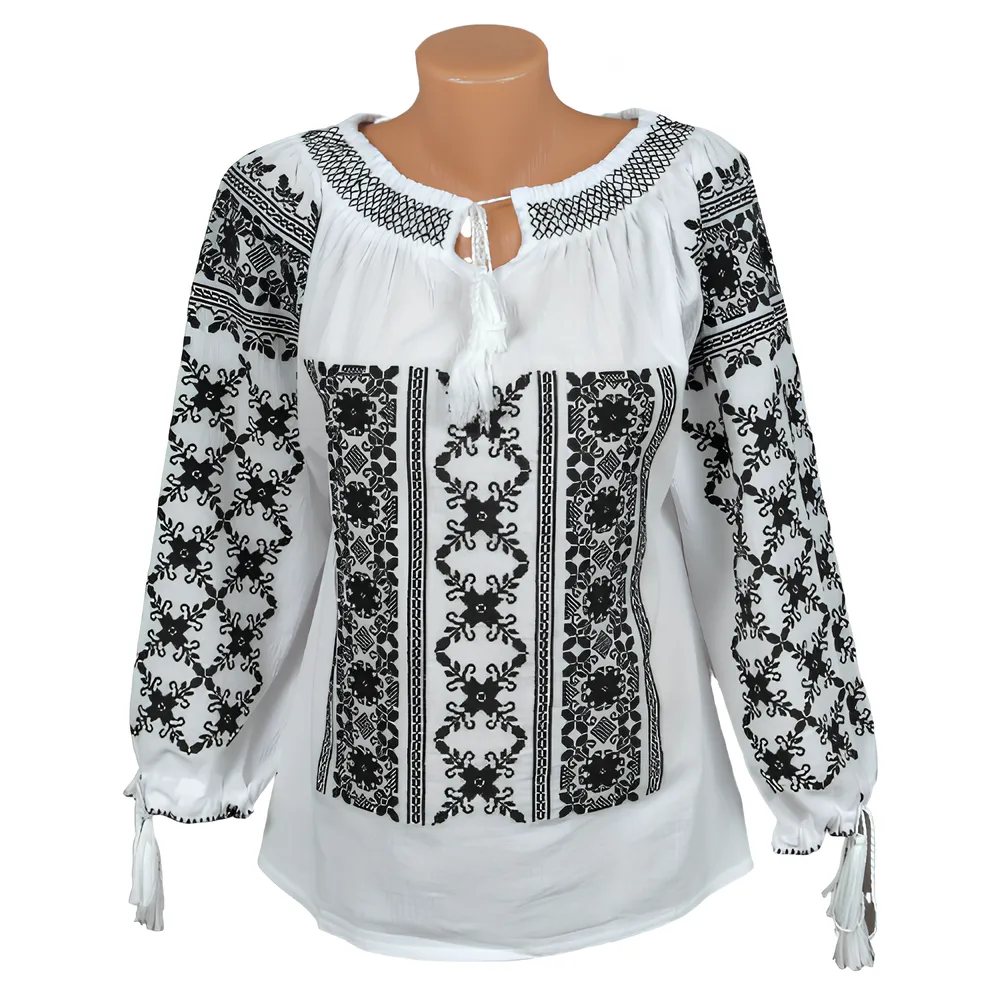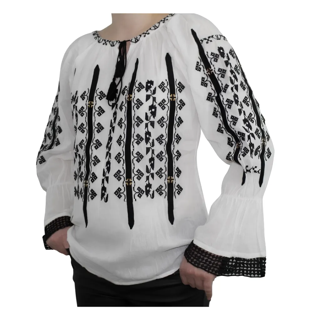 Bluza Tip Ie Alba cu Motiv Floral Negru - BMG45