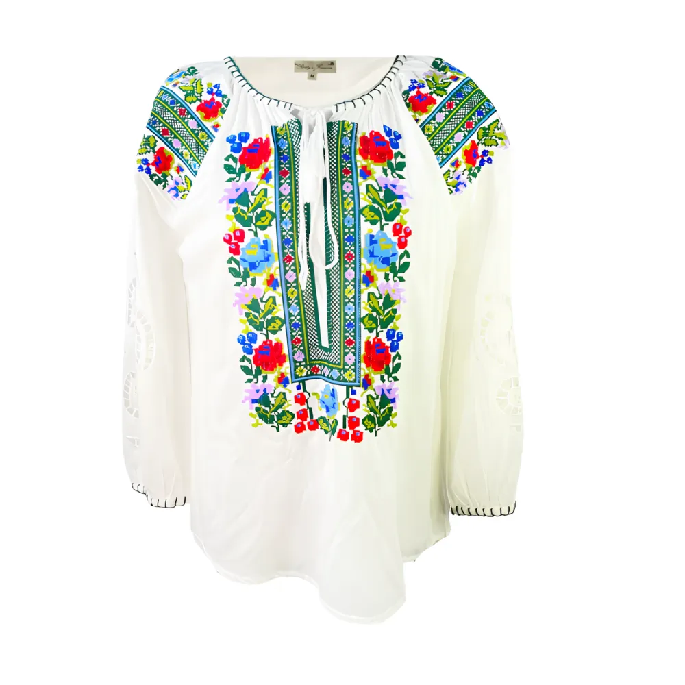 Bluza Tip Ie Alba cu Motiv Floral Multicolor - BMG09