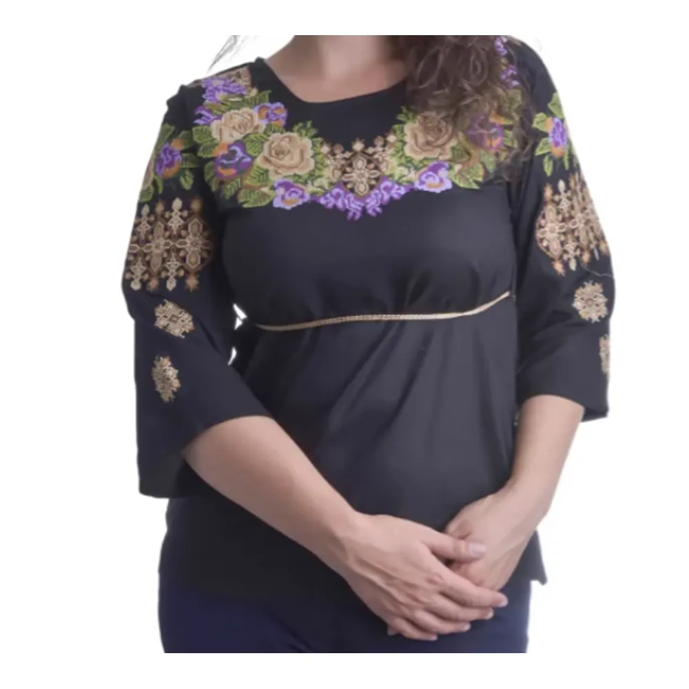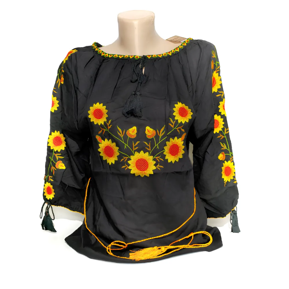Bluza Traditionala Neagra cu Motiv Floral Multicolor - BMG187