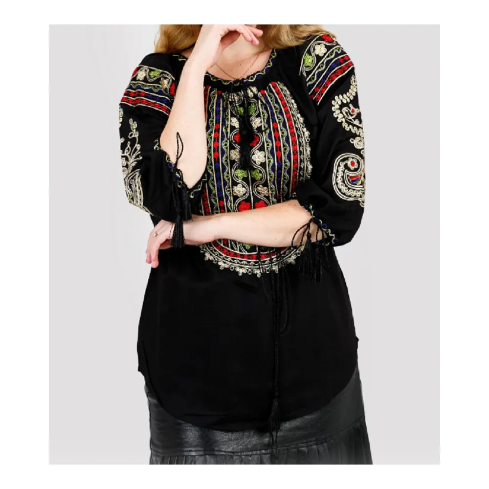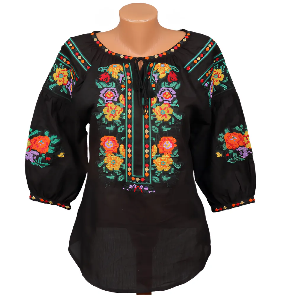 Bluza Traditionala Neagra cu Motiv Floral Multicolor - BMG96
