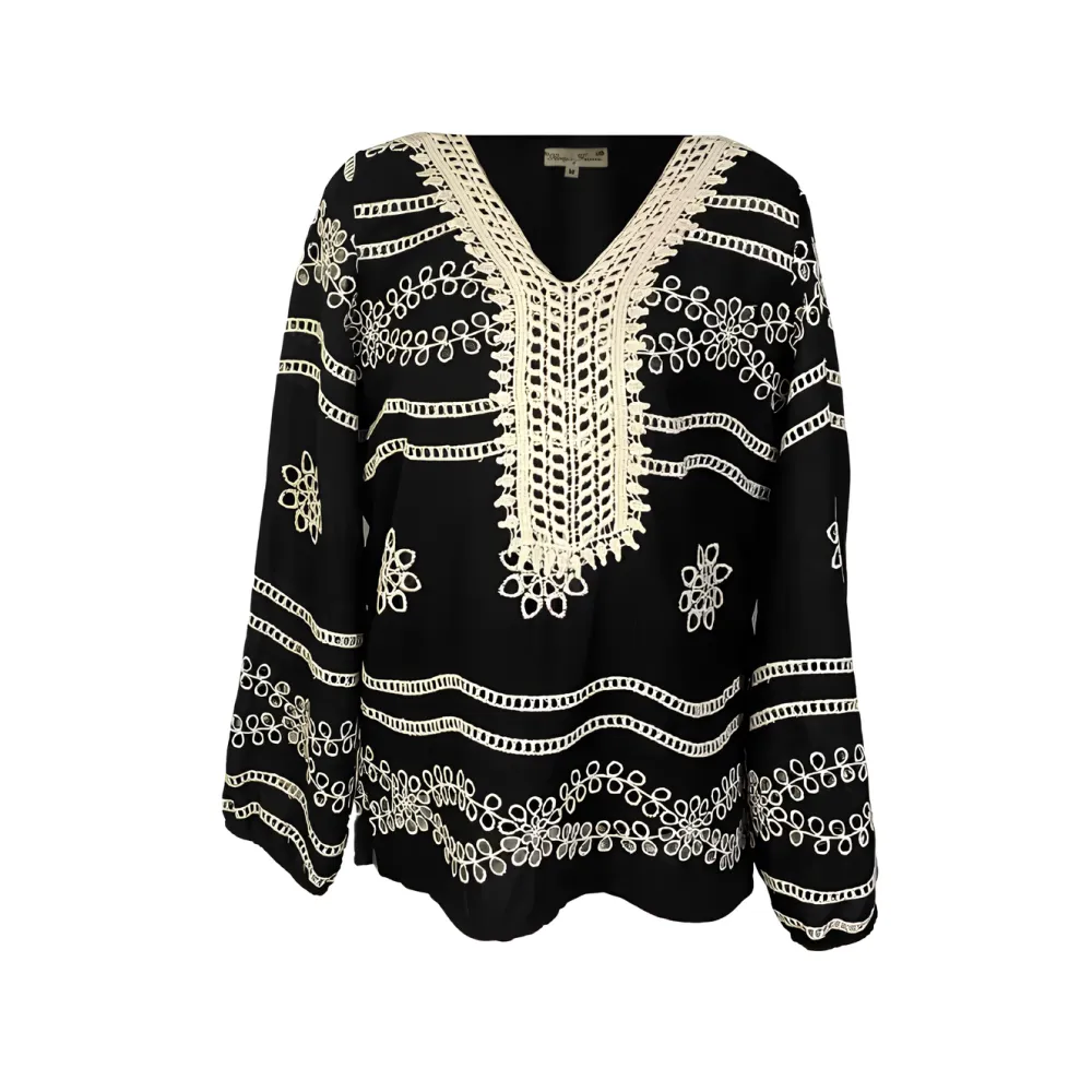 Bluza Tip Ie Neagra cu Motiv Geometric Crem - BMG13