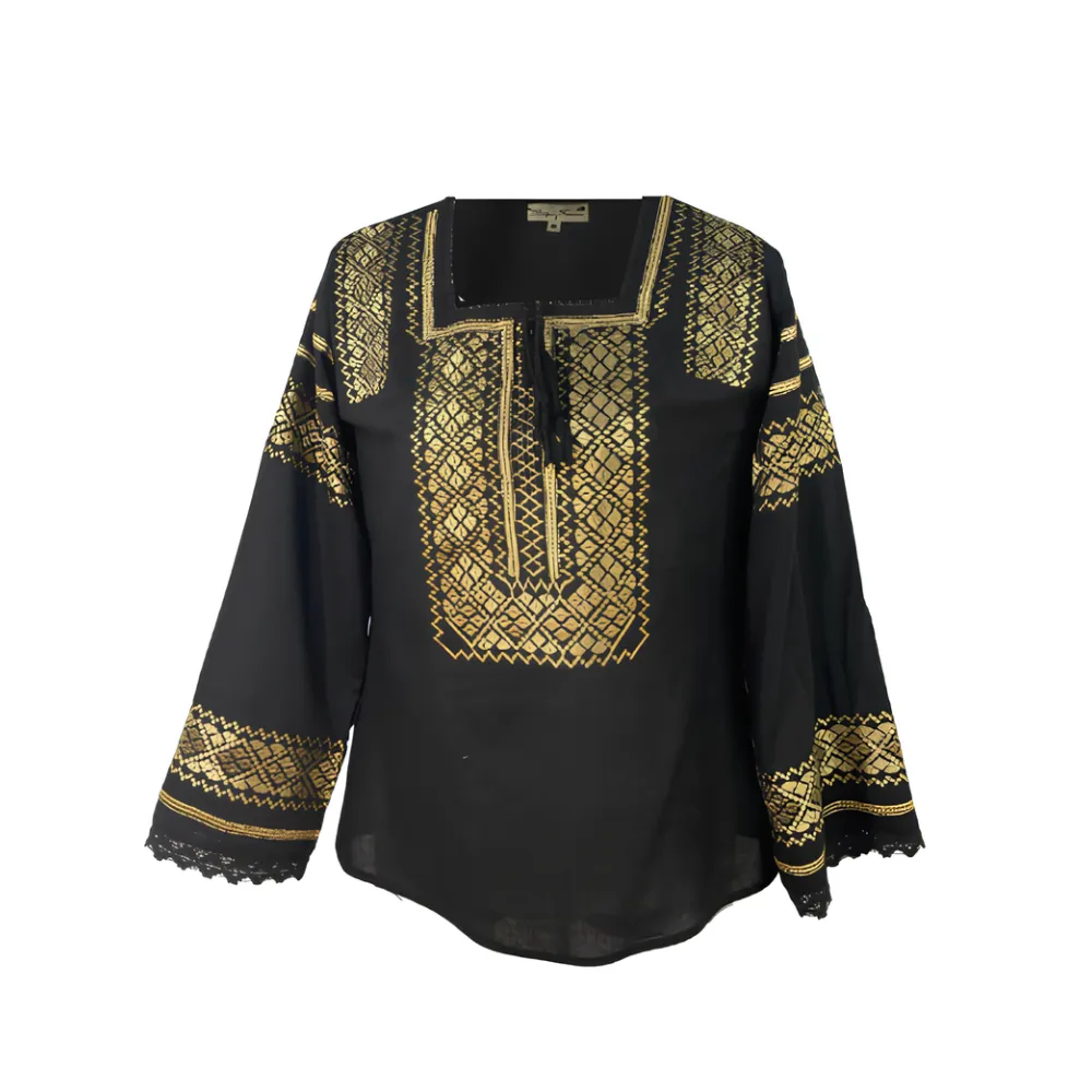 Bluza Tip Ie Neagra cu Motiv Geometric Auriu - BMG05