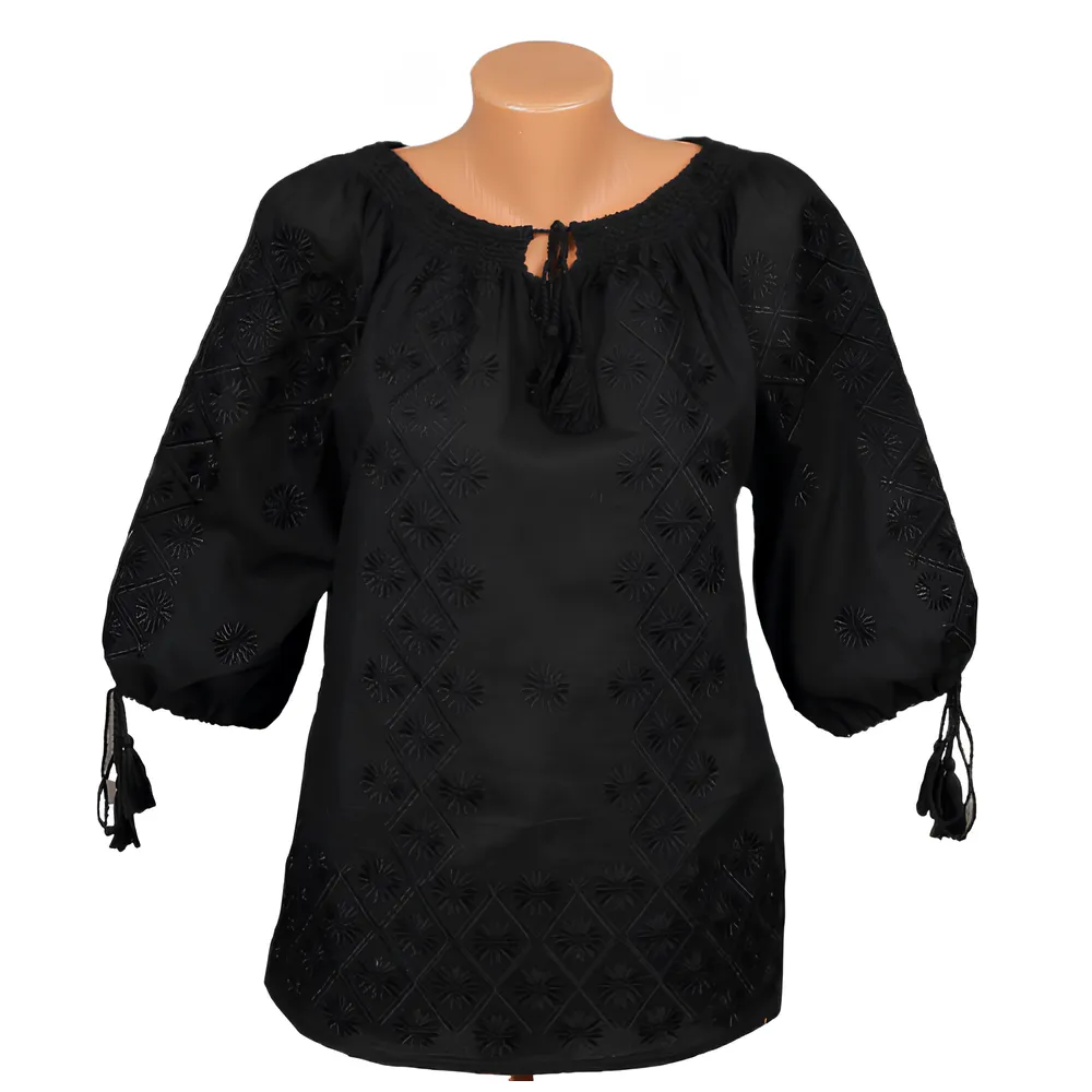 Bluza Tip Ie Traditionala Neagra cu Motiv Floral - BMG31