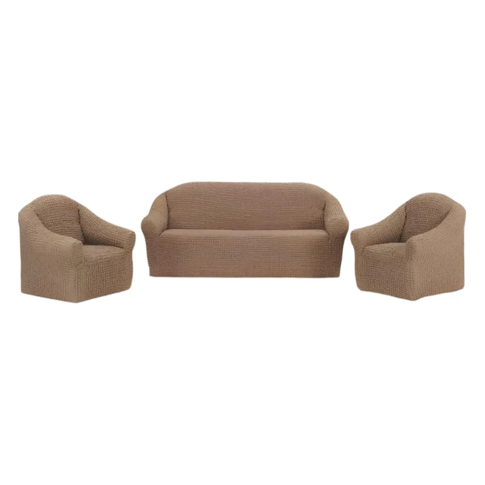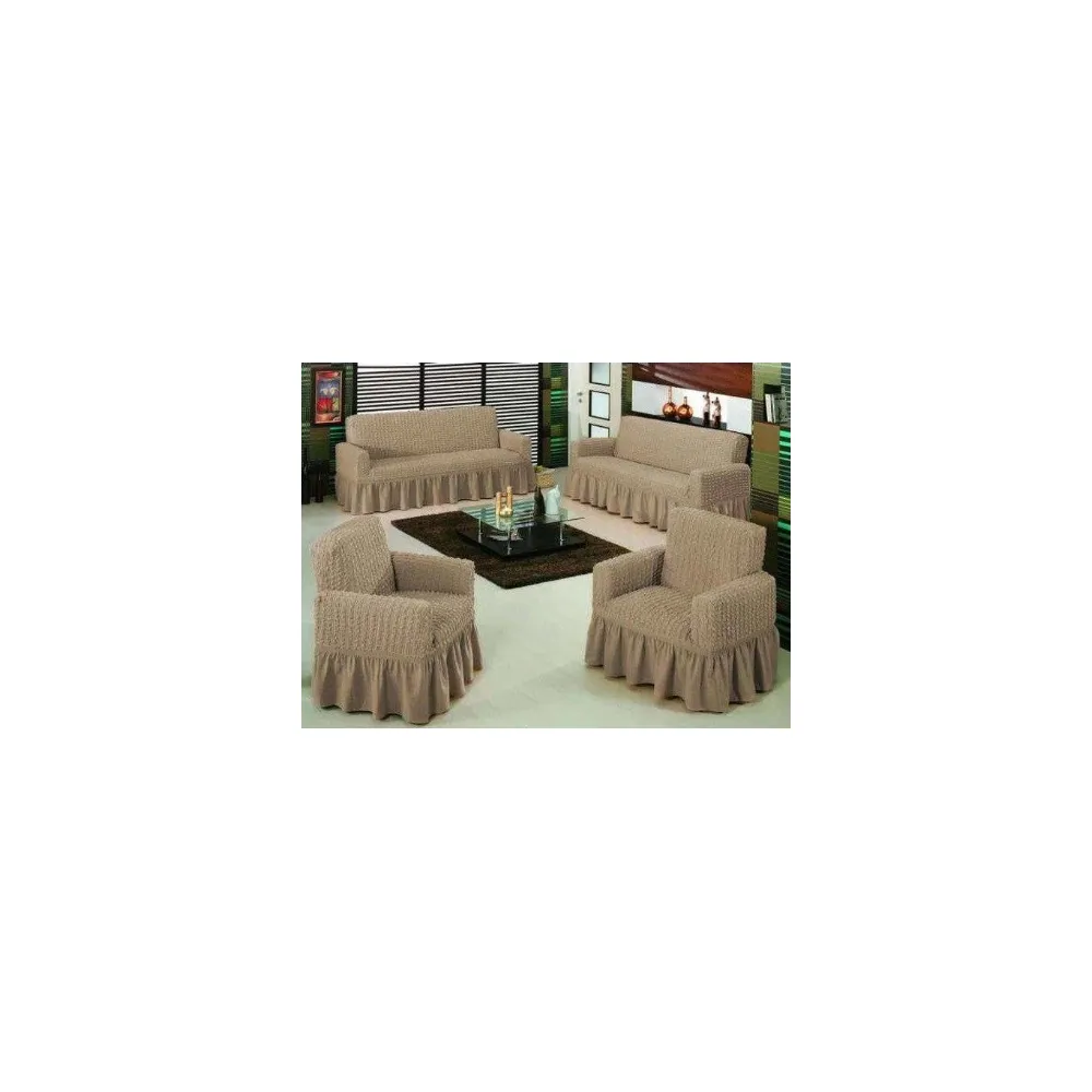 Huse Elastice si Creponate fara Volane, Canapea 3 Persoane + 2 Fotolii, Bone - HF08
