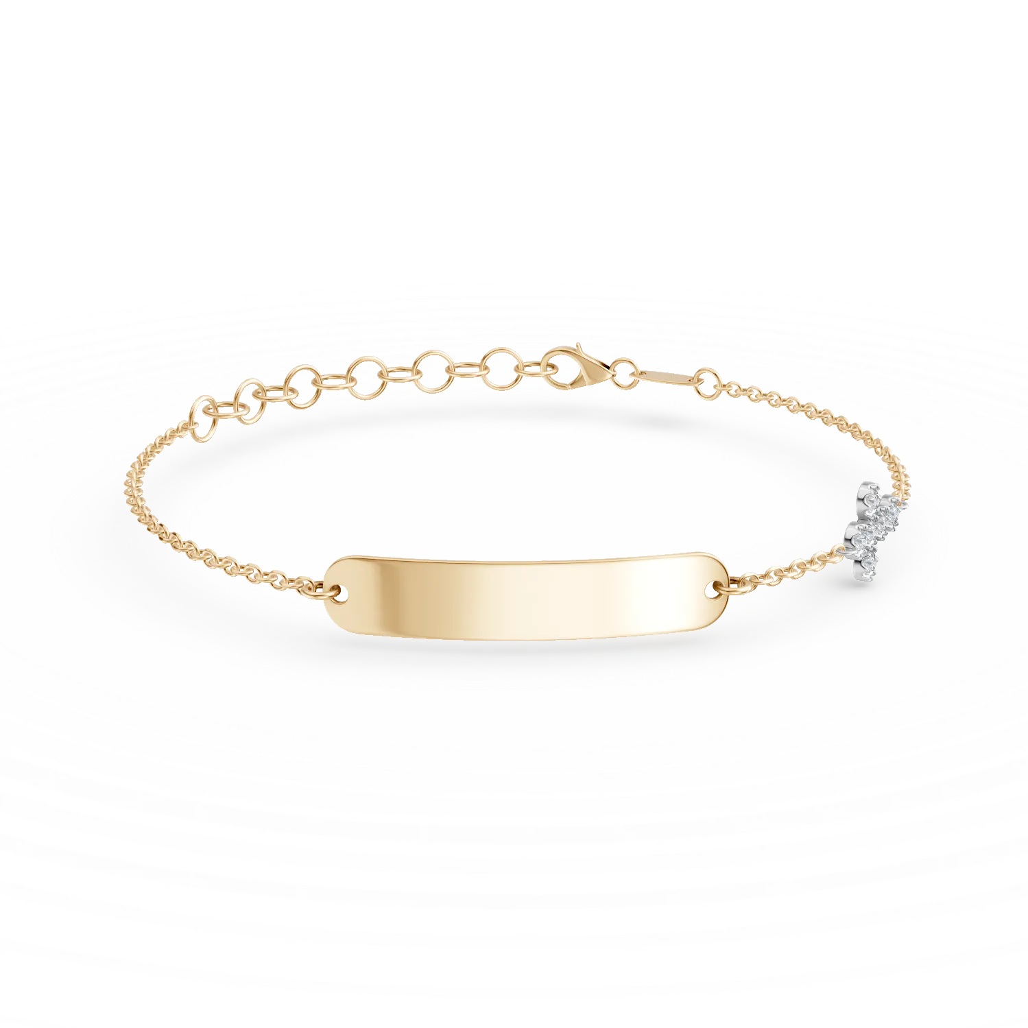 Bratara cu placuta de gravare din aur alb-galben cu zirconii pentru copii