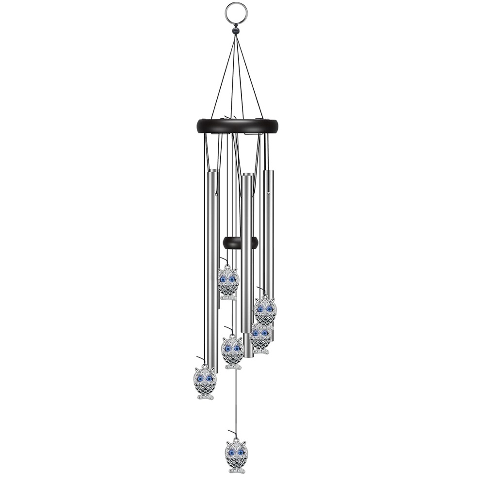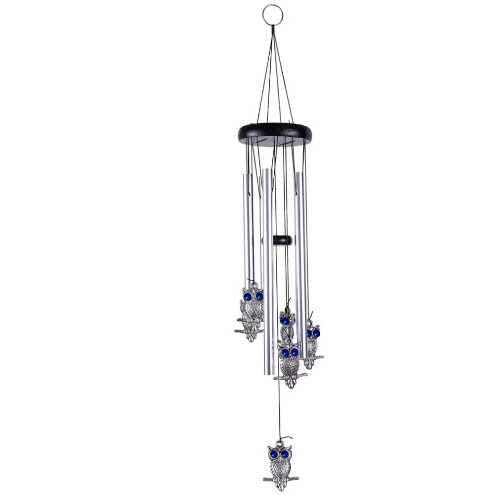 Clopotel de vant cu 5 tuburi sonore metalice pentru casa sau gradina, model clasic cu bufnite
