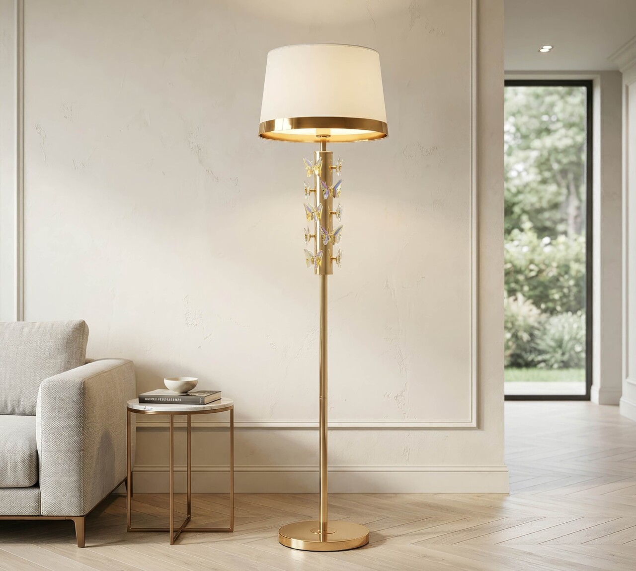 Oglinda decorativa Butterfly Wind, Mauro Ferretti, Ø 81.5 cm, fier, auriu