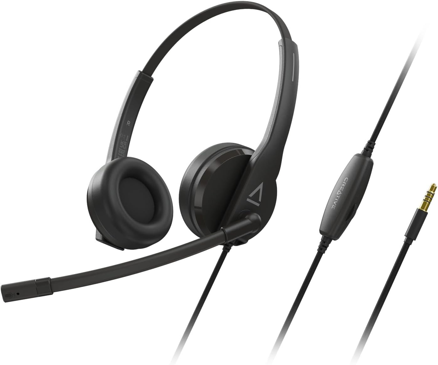 Casti on-ear cu microfon, negru, cu fir, 3.5mm jack sau USB, adaptor inclus, Office HS-230 Creative