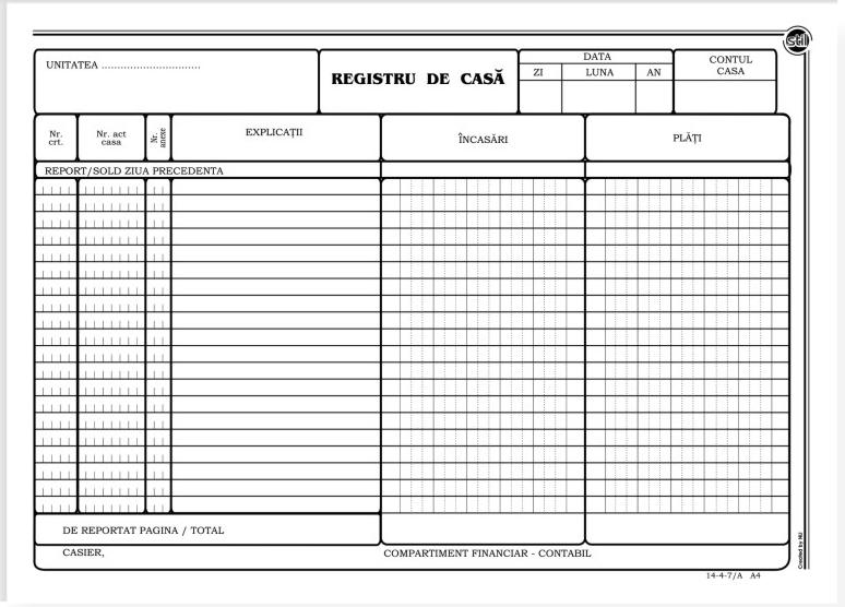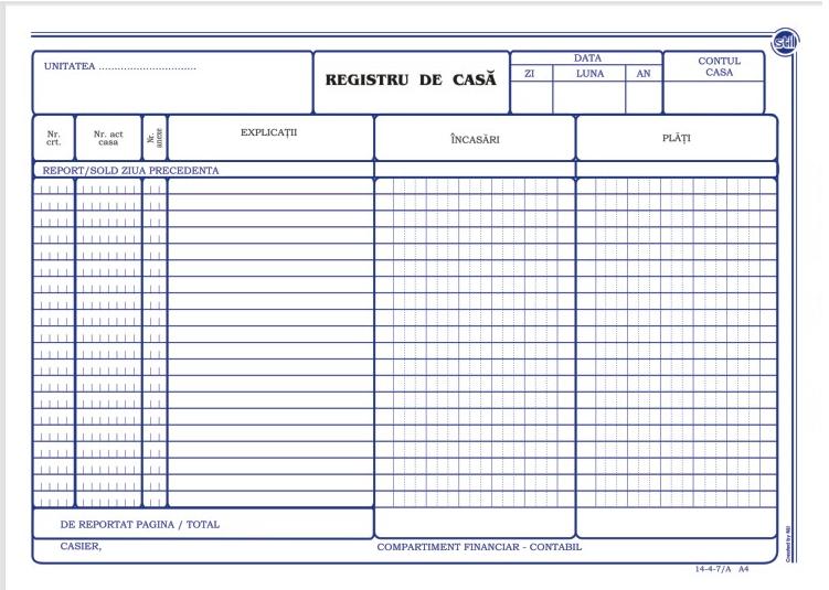 Registru de casa orizontal in valuta, autocopiativ, A4