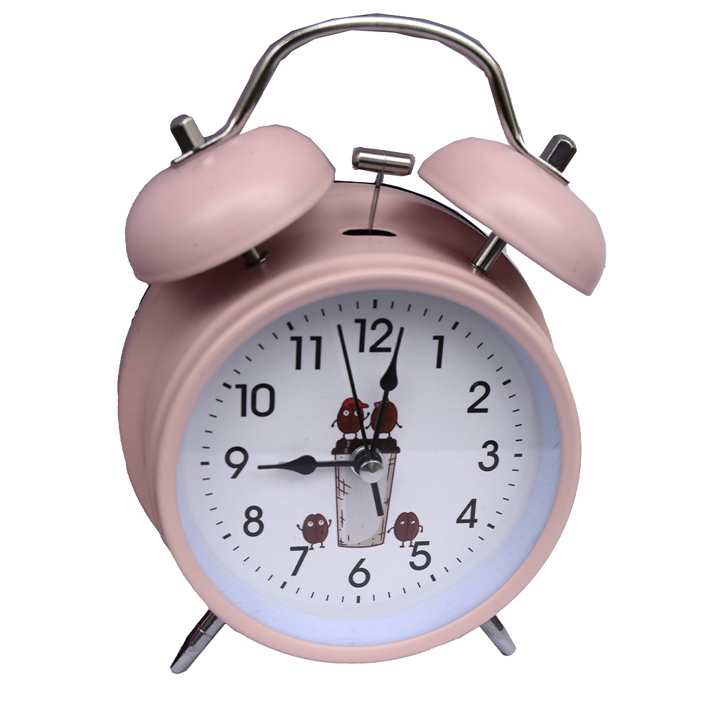 Ceas de masa desteptator Pufo Coffee Time cu buton de iluminare cadran, metalic, 16 cm, roz