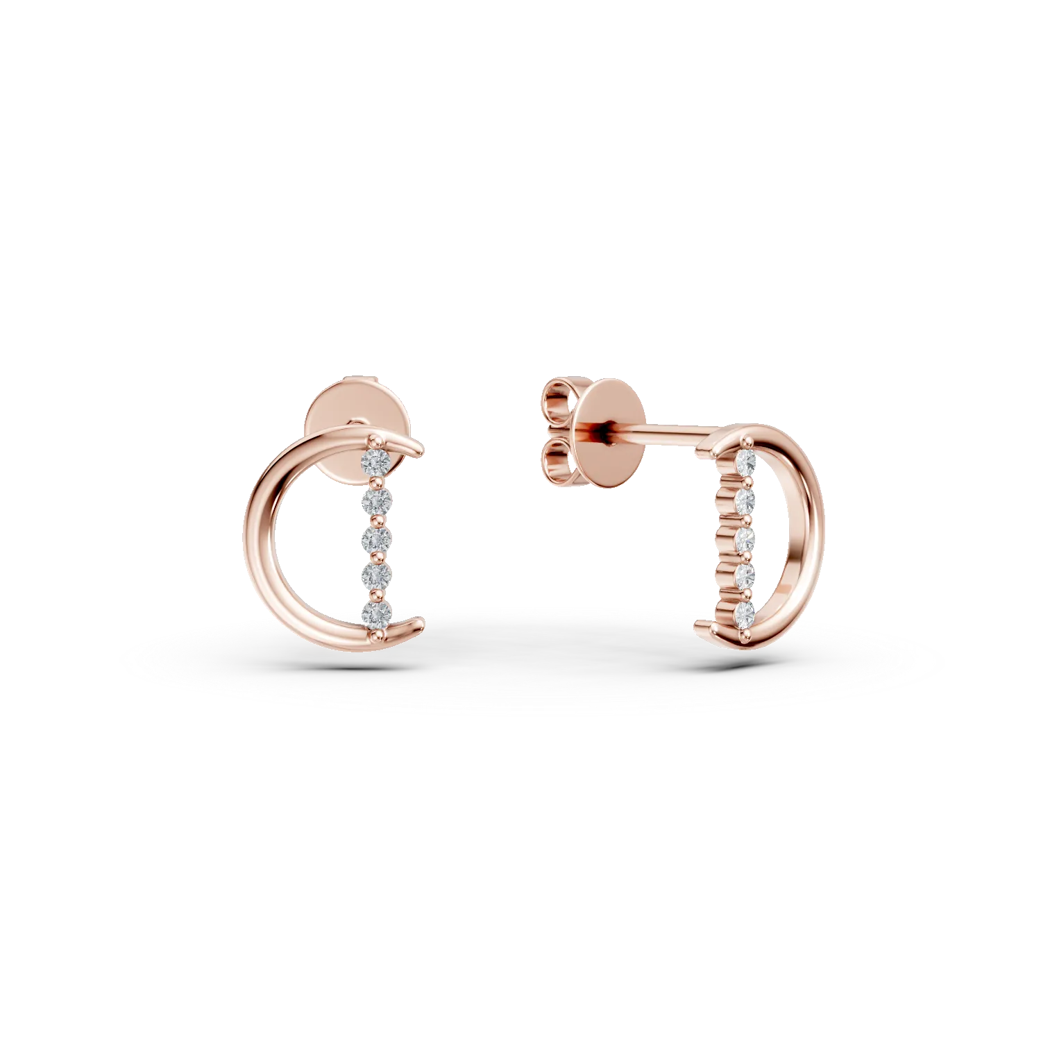Cercei semiluna din aur roz cu diamante de 0.05ct
