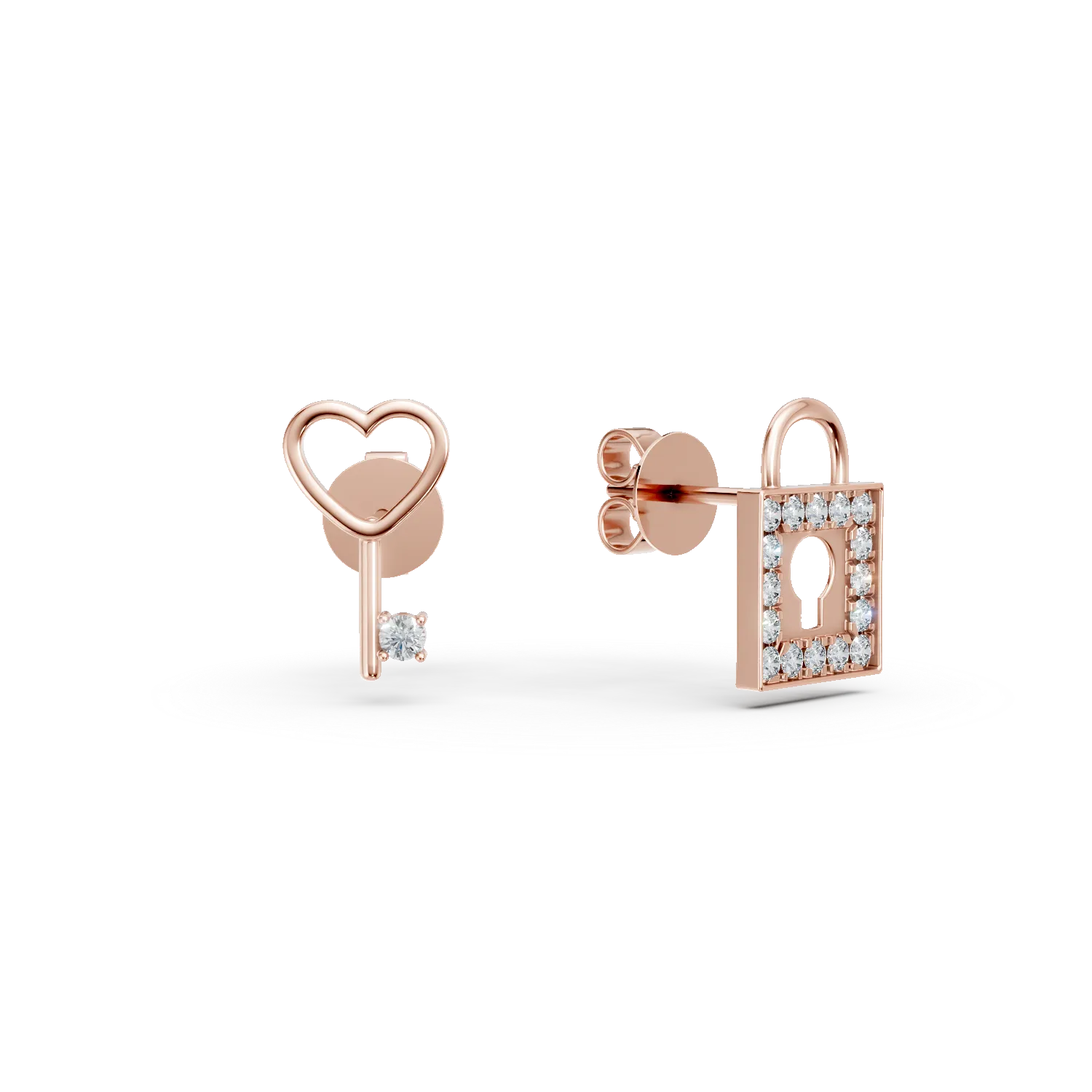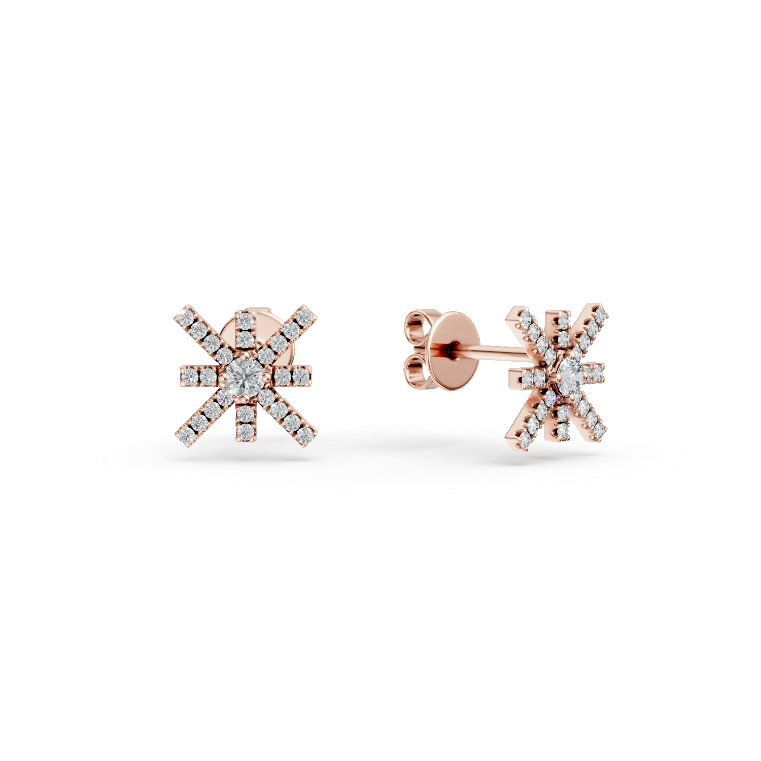 Cercei geometrici din aur roz cu diamante de 0.4ct
