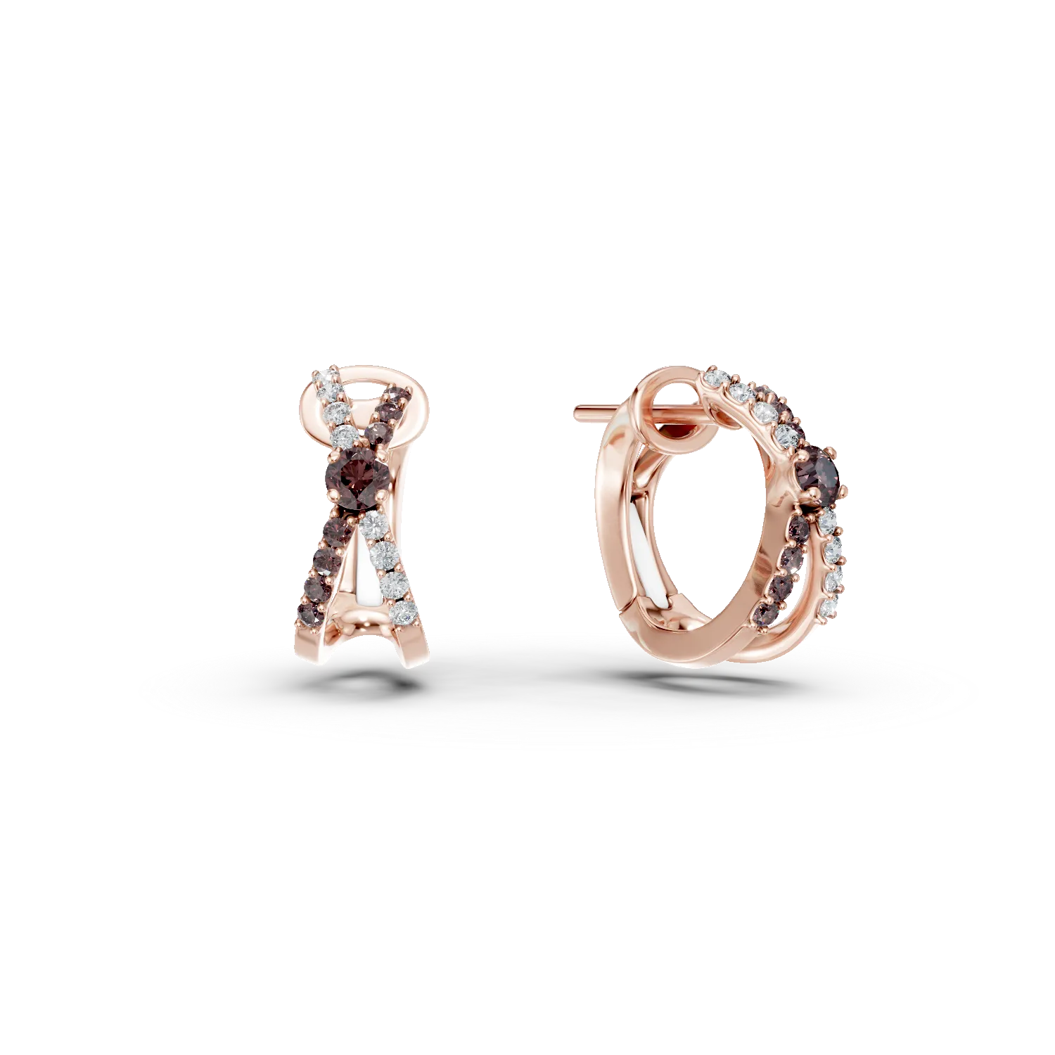 Cercei din aur roz cu diamante maro de 0.33ct si diamante de 0.19ct