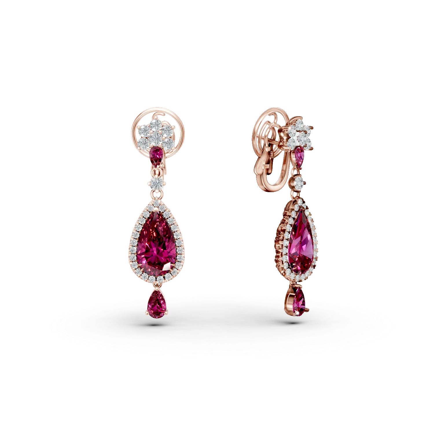 Cercei floare din aur roz cu turmaline roz pear de 1.9ct si diamante de 0.31ct