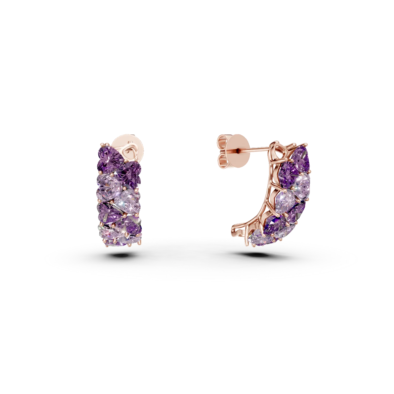 Cercei on ear din aur roz cu ametiste heart de 4.3ct