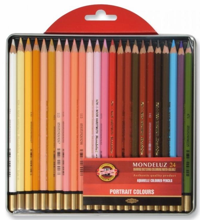 Creioane colorate acuarela, 24culori/set, cutie metal, Portret Mondeluz Aquarell, Koh-I-Noor