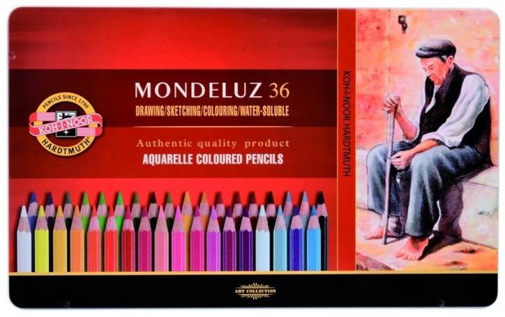 Creioane colorate acuarela, 36culori/set, cutie metal, Mondeluz Aquarell, Koh-I-Noor