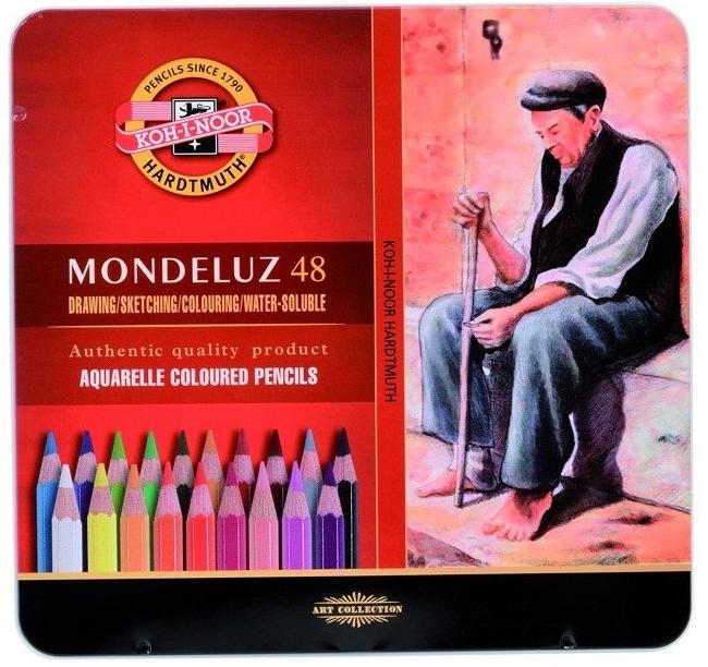 Creioane colorate acuarela, 48culori/set, cutie metal, Mondeluz Aquarell, Koh-I-Noor
