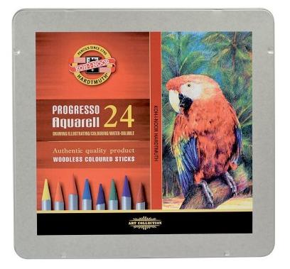 Creioane colorate acuarela, fara lemn, 24culori/set, cutie metal, Progresso Aquarell Koh-I-Noor
