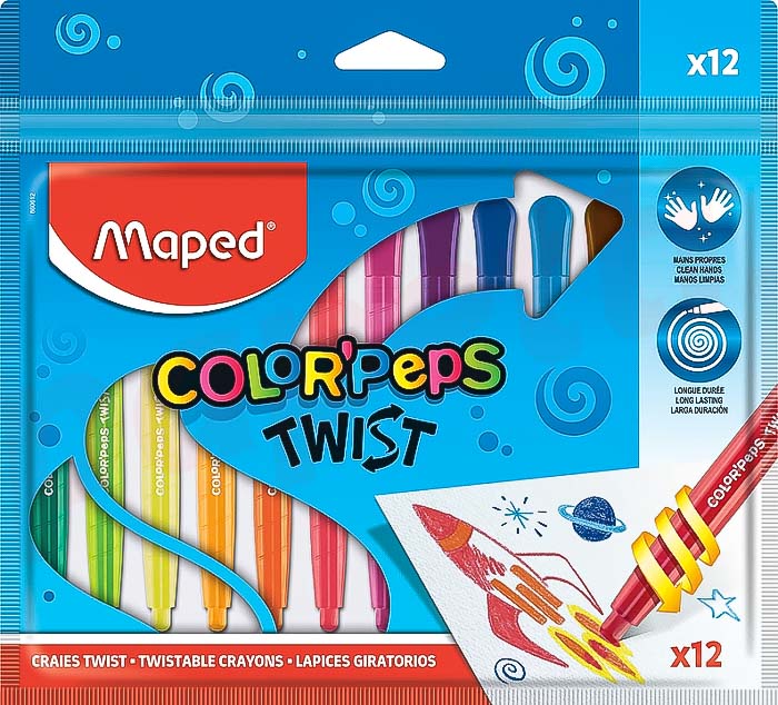 Creioane colorate cerate cu varf retractabil, 12culori/set, Color Peps Twist Maped