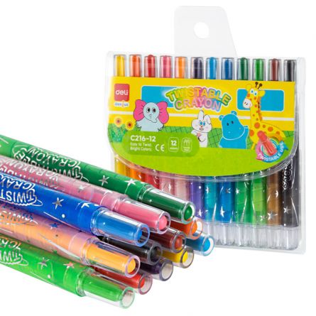 Creioane colorate cerate retractabile, 12culori/set, Deli - DLEC216-12