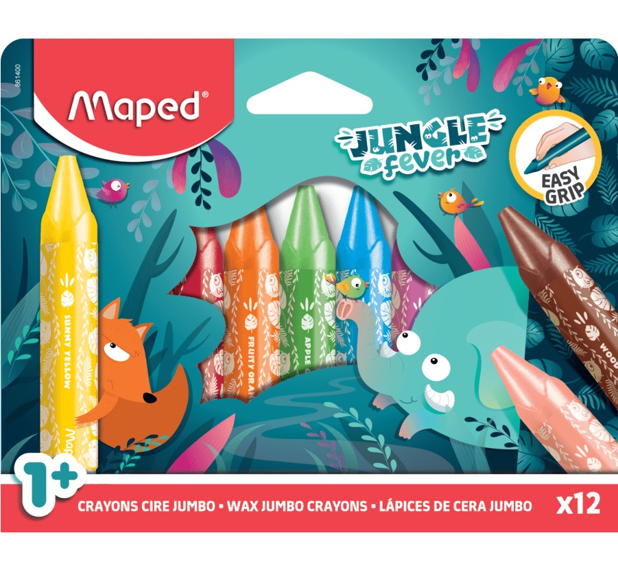 Creioane colorate cerate, 12culori/set, Jungle Fever Jumbo Maped