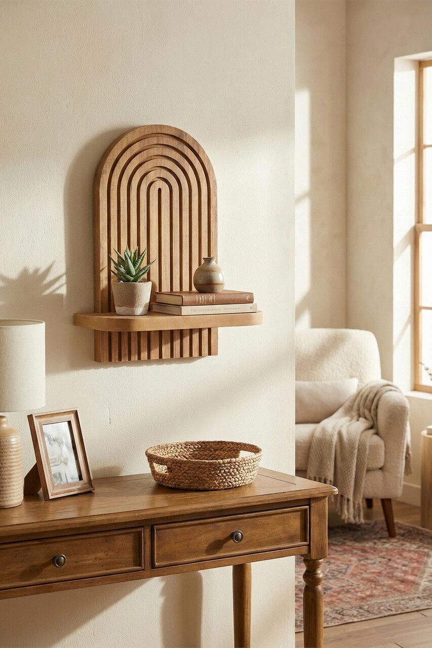 Raft de perete, Hanah Home, Artmtkwll2D, 26x35x13 cm, Stejar
