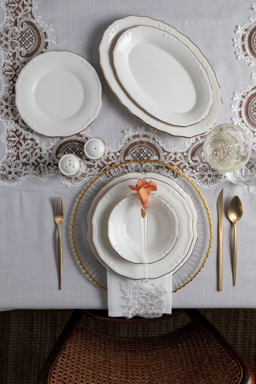 Set de cină (53 bucăți), Lessentiel Maison, 667PRS1145, Farfurie: 22 x 22 cm (12 bucăți), Alb/Auriu