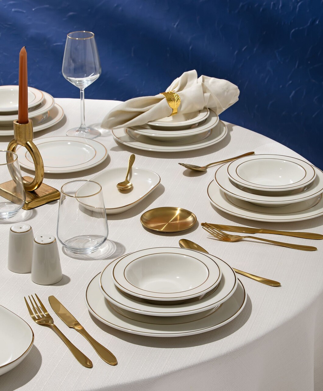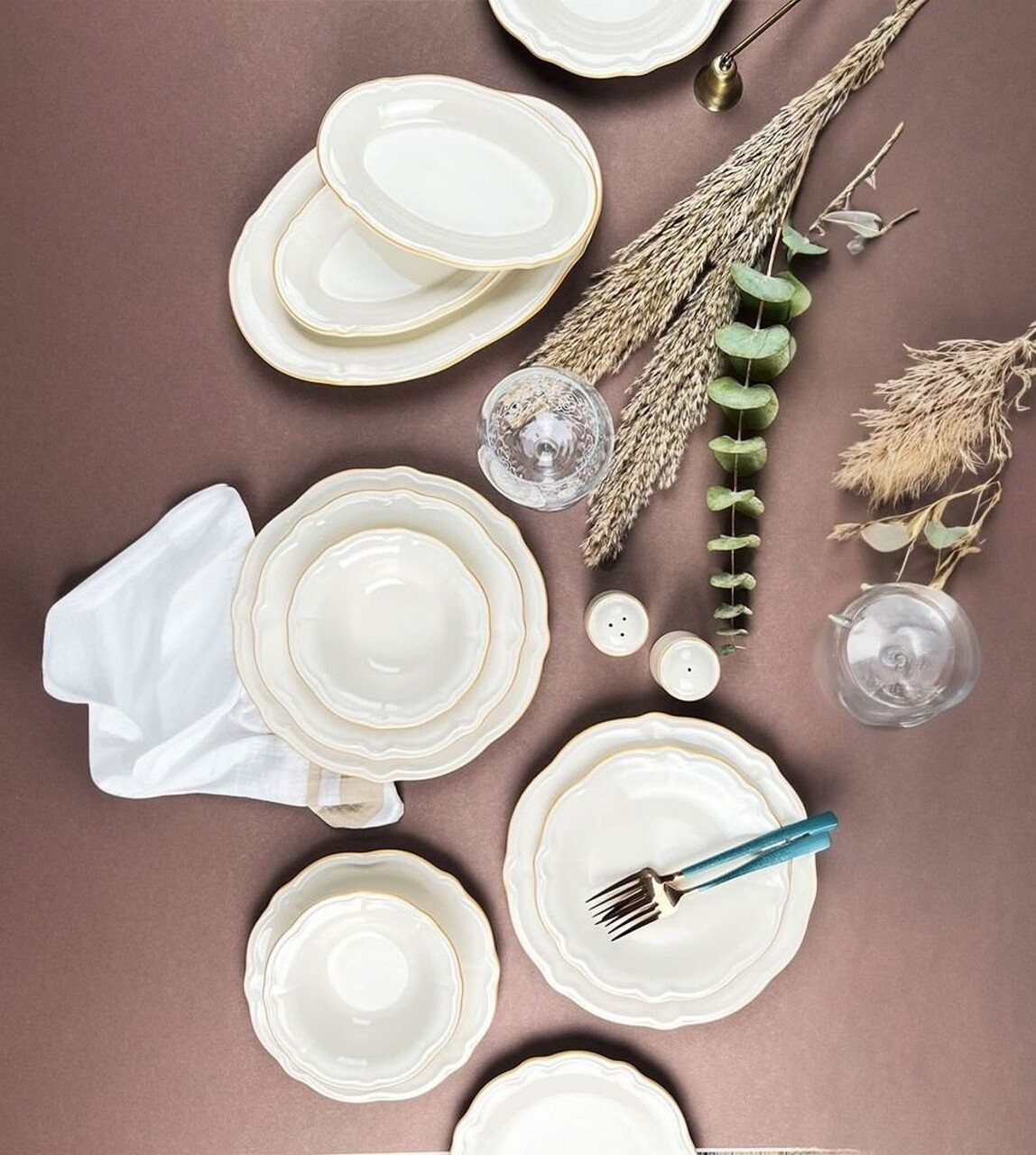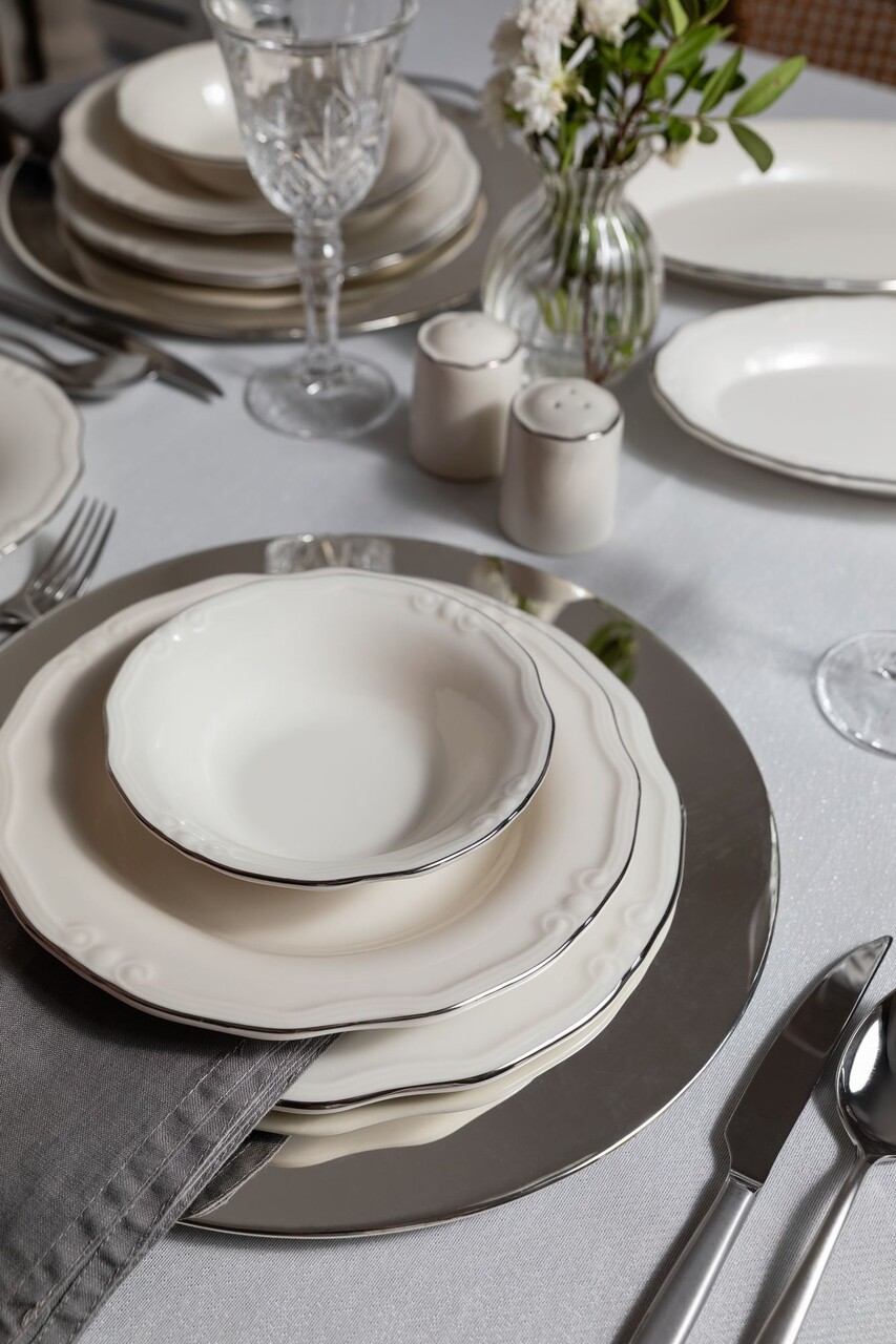 Set de cină (53 bucăți), Lessentiel Maison, 667PRS1149, Farfurie: 21 x 21 cm (12 bucăți), Alb/Auriu