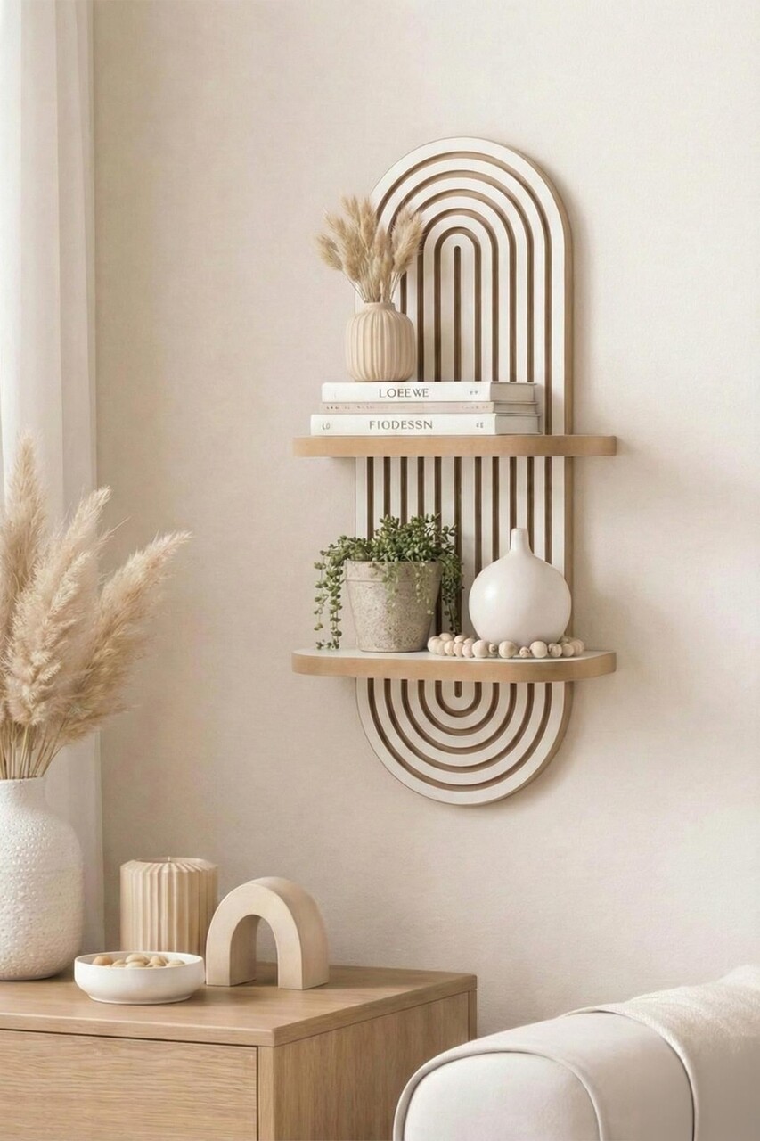 Raft de perete, Hanah Home, Artmtkwll3, 26x35x13 cm, Alb