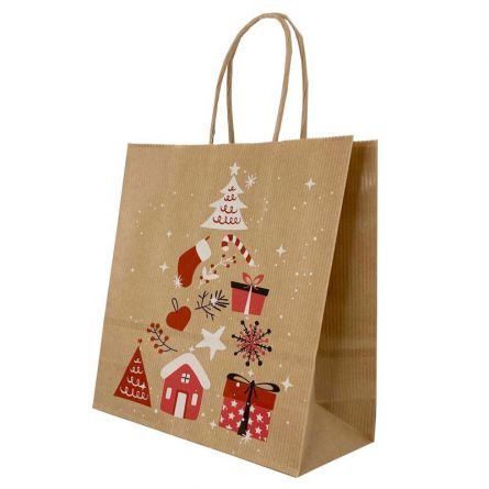 SACOSE DIN HARTIE MOTIVE DE CRACIUN, NATUR 25x11x32 cm (100buc/set)