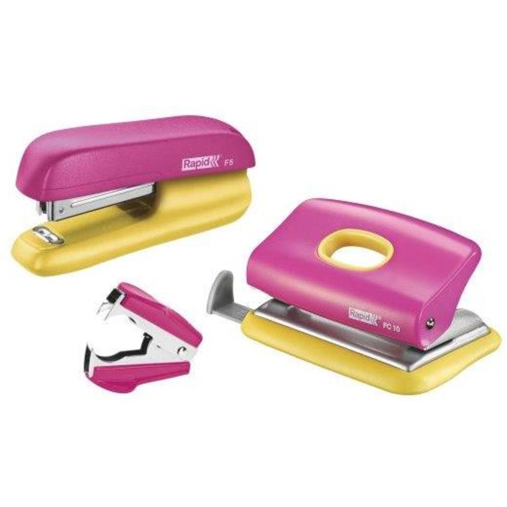 Set capsator plastic Rapid F5 nr.10, perforator plastic FC10 si decapsator, roz/galben, Rapid