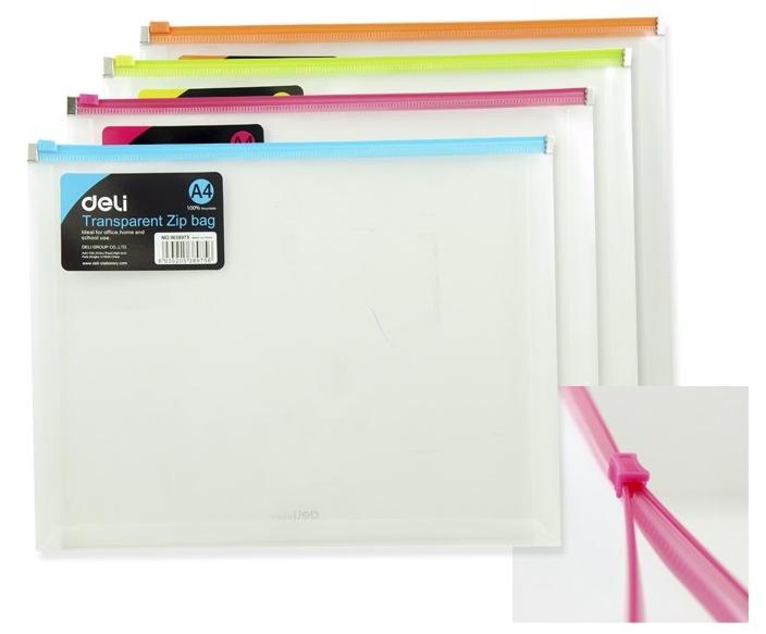 Mapa plastic transparent cu fermoar diverse culori A4, Deli